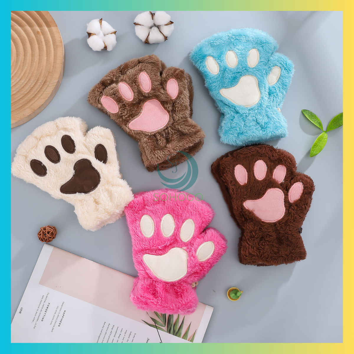 ✨[CHỌN MÀU- 1 CẶP]-Găng tay lông hình thú cao cấp hình gấu- Găng tay giữ ấm khi đi du lịch/ chống nắng khi lái xe- Găng tay hở ngón mềm mịn