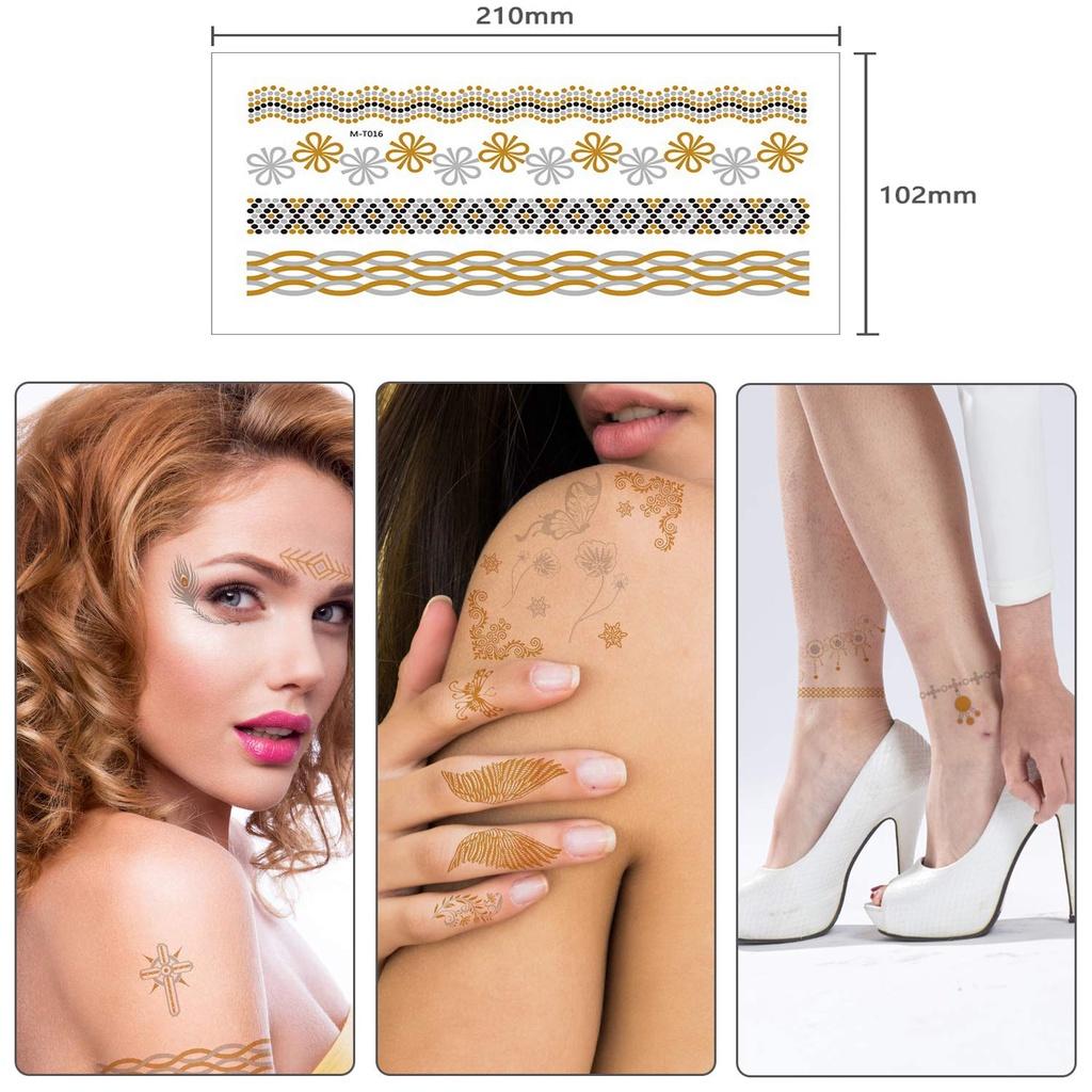 ✨(Chọn mẫu) Hình xăm dán ánh kim, miếng dán xăm nhũ tạm thời henna tatoo vòng tay, băng tay Legaxi