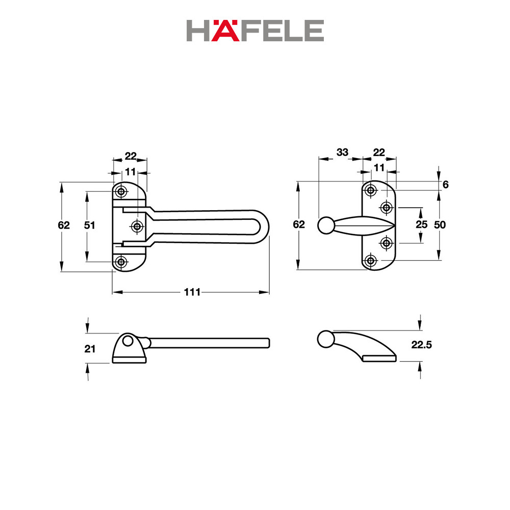Chốt cửa an toàn Hafele - 489.15.001 là phụ kiện nhà ở được sản xuất theo công nghệ tiên tiến của Đức, ưu việt, phù hợp với đa dạng không gian sống. Sản phẩm được