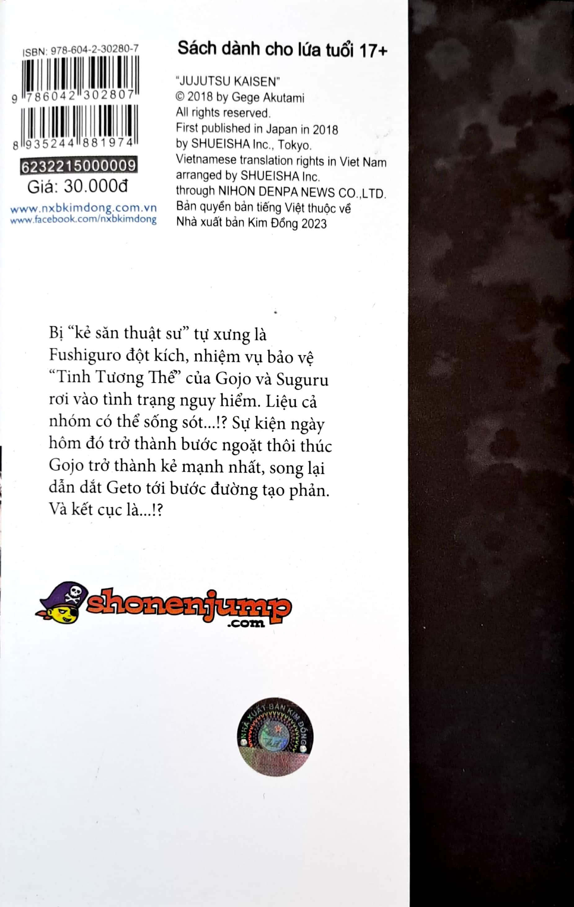 Bị “kẻ săn thuật sư” tự xưng là Fushiguro đột kích, nhiệm vụ bảo vệ “Tinh Tương Thể” của Gojo và Suguru rơi vào tình trạng nguy hiểm. Liệu cả nhóm có thể sống sót...!? Sự kiện ngày hôm đó trở thành bước ngoặt thôi thúc Gojo trở thành kẻ mạnh nhất, song lại dẫn dắt Geto tới bước đường tạo phản. Và kết cục là...!?