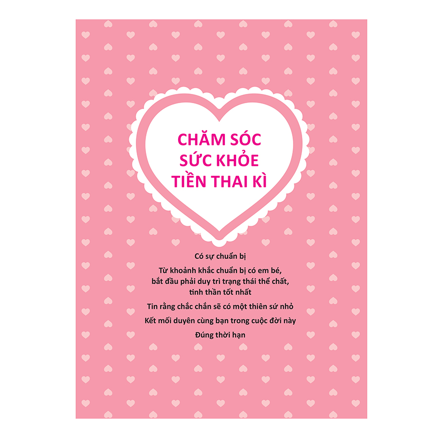 Cuốn sách này đề cập đến các vấn đề thai sản bắt đầu từ khi chuẩn bị mang thai, lời văn bình dị, gần gũi, giới thiệu đến bạn những kiến thức trên phương diện chăm sóc sức khỏe về dinh dưỡng, sinh hoạt, tâm lí, vận động tiền thai kì, trong thai kì, khi sinh nở và sau khi sinh nở, giúp các mẹ chăm sóc bản thân và bé tốt hơn.