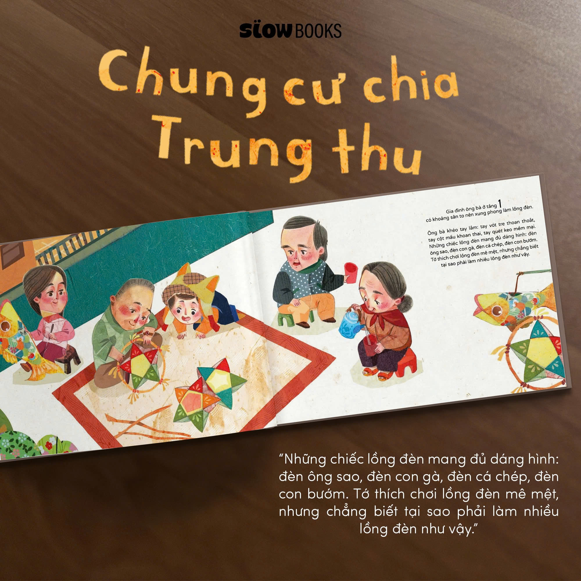 "Chung cư chia Trung thu" là cuốn sách thiếu nhi đáng yêu, kể câu chuyện về một em bé sống trong chung cư và một mùa Trung thu thật đặc biệt. Tác phẩm đã khắc