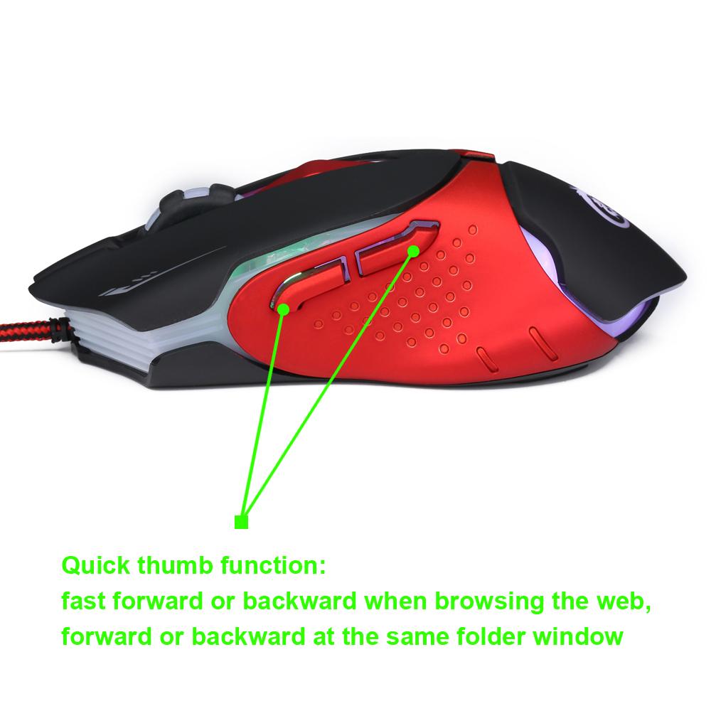 HXSJ High-end optical professional gaming mouse 7 bright colors with LED backlit and ergonomics design for comfortable touch, long-term use without fatigue. Features: High-end optical motor, precise positioning. 7 buttons, including Buttons: Left, Right, Scroll