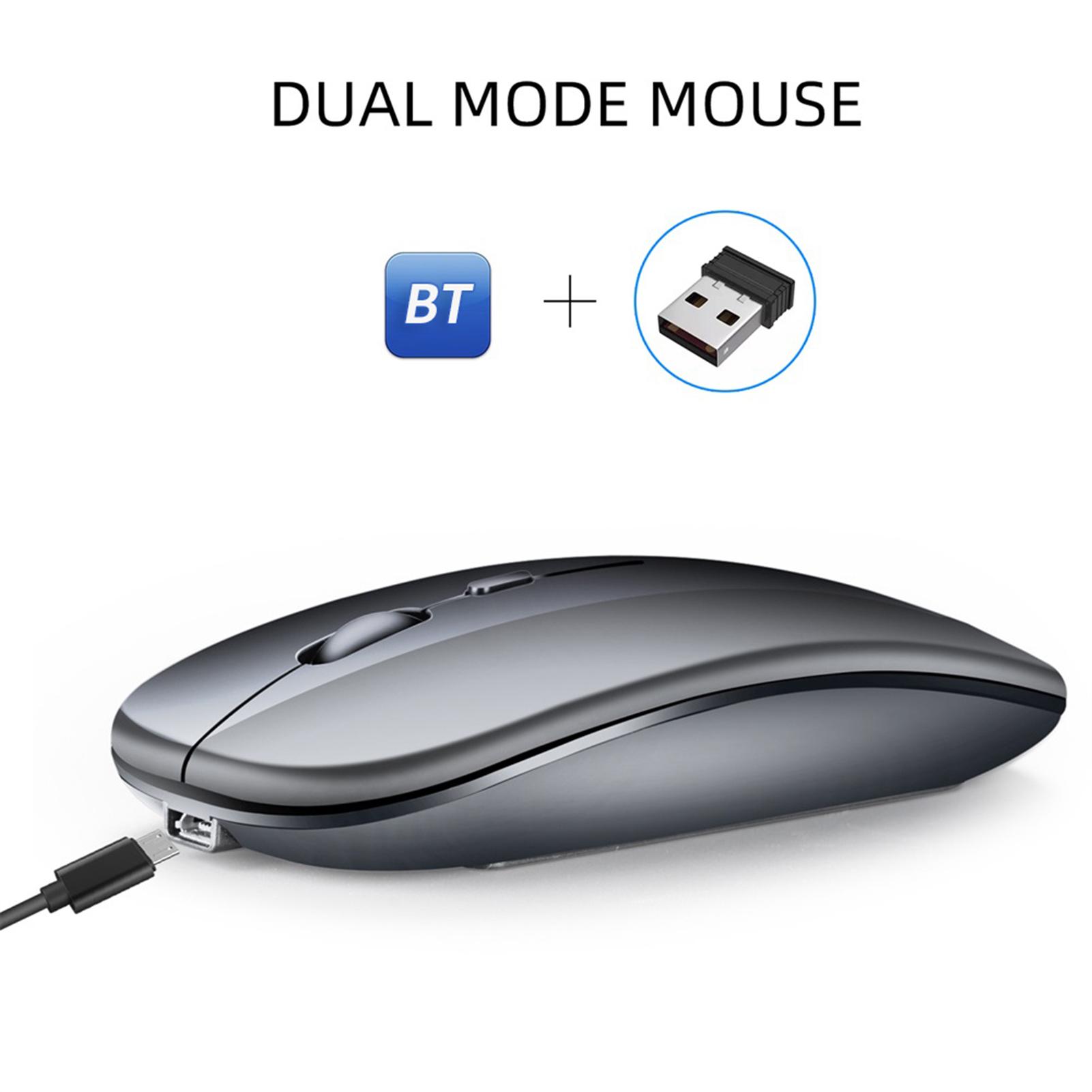 Features: Dual Mode BT5.0 + 2.4G wireless,you can switch the mouse freely and easily between 2 compouters just by a click on the mode key,easy and convenient to use. Rechargeable Mouse Built-in rechargeable lithium battery,no