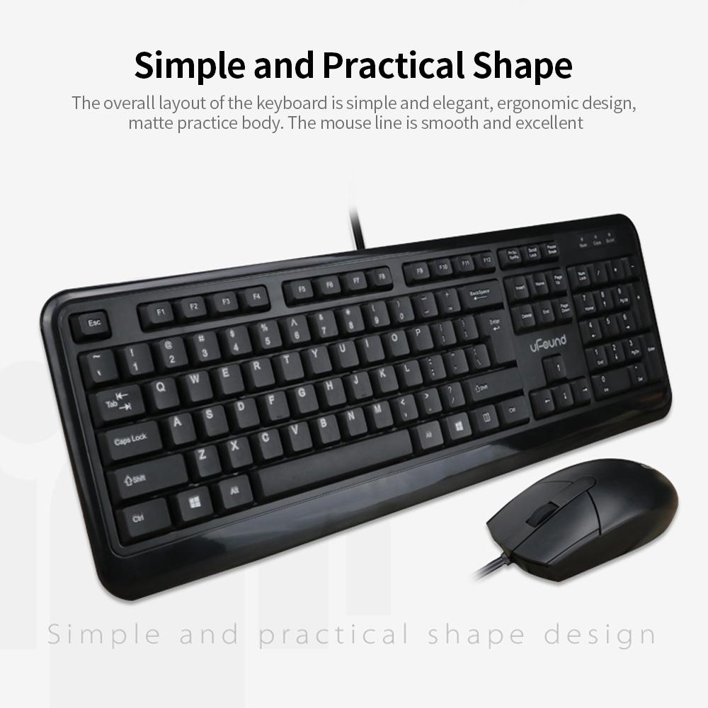 Features: Crater Core The classic crater core, the buttons are light and comfortable, bringing you a new experience. Screen UV Process Keycap characters use silk screen UV technology, which has strong abrasion resistance, and has good durability. Mute Button Low decibel keys, greatly reducing the sound of keys, quietly output every character you type. Anti-skid Roller The mouse uses an exquisite fine-tooth non-slip rubber roller, which makes the roller feel strong when used, avoiding mistakes when browsing the web or other environments. Easy Operation Fully ergonomically designed, the design is simple and practical, the hand feels superior, and the control is handy. Splash Proof Design The large drain hole is densely covered at the bottom, so you can never use the device to avoid short-circuiting the keyboard. Compatible with Various Devices Suitable for all-in-one machine, desktop computer, notebook, smart TV and other devices, easy to use. Specification: Brand: uFound Item type: Wired mouse and keyboard set Model: U-760 Color: Black Material: ABS Usage mode: wired Number of keys: 104 Working mode: Optoelectronics Interface: USB Operating system: Windows XP/7/8/10 Mac Keyboardsize:45.515.62.2cm / 17.916.140.87in(L W H) Mousesize:11.26.23.2cm / 4.412.441.26in Package size:56.817.74.7cm / 22.366.971.85in(L W H) Package weight:785g /27.69oz Packing list: 1 Keyboard 1 Mouse 1 * User Manual