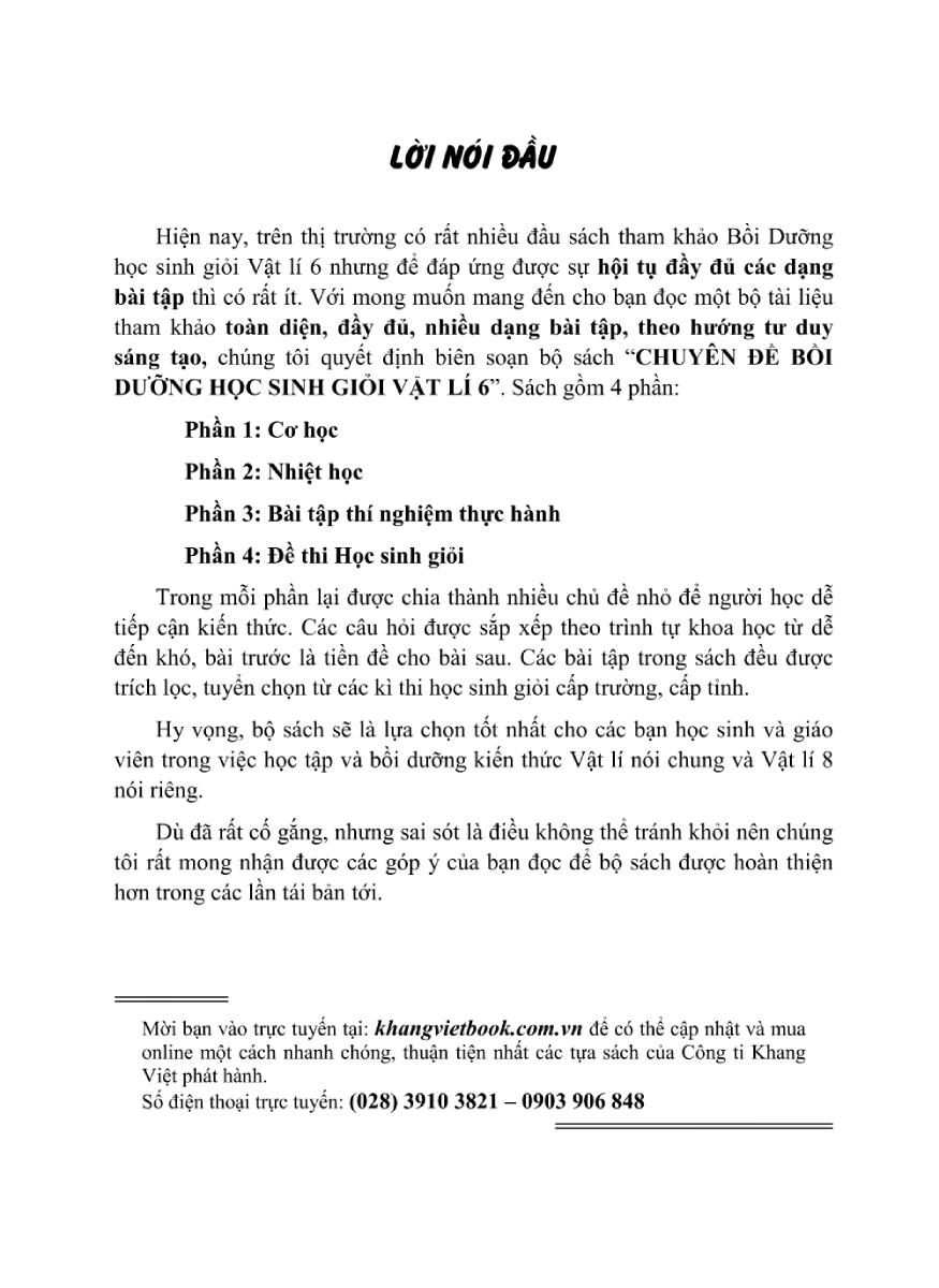 Chuyên Đề Bồi Dưỡng Học Sinh Giỏi Vật Lí 6 gồm 4 phần: