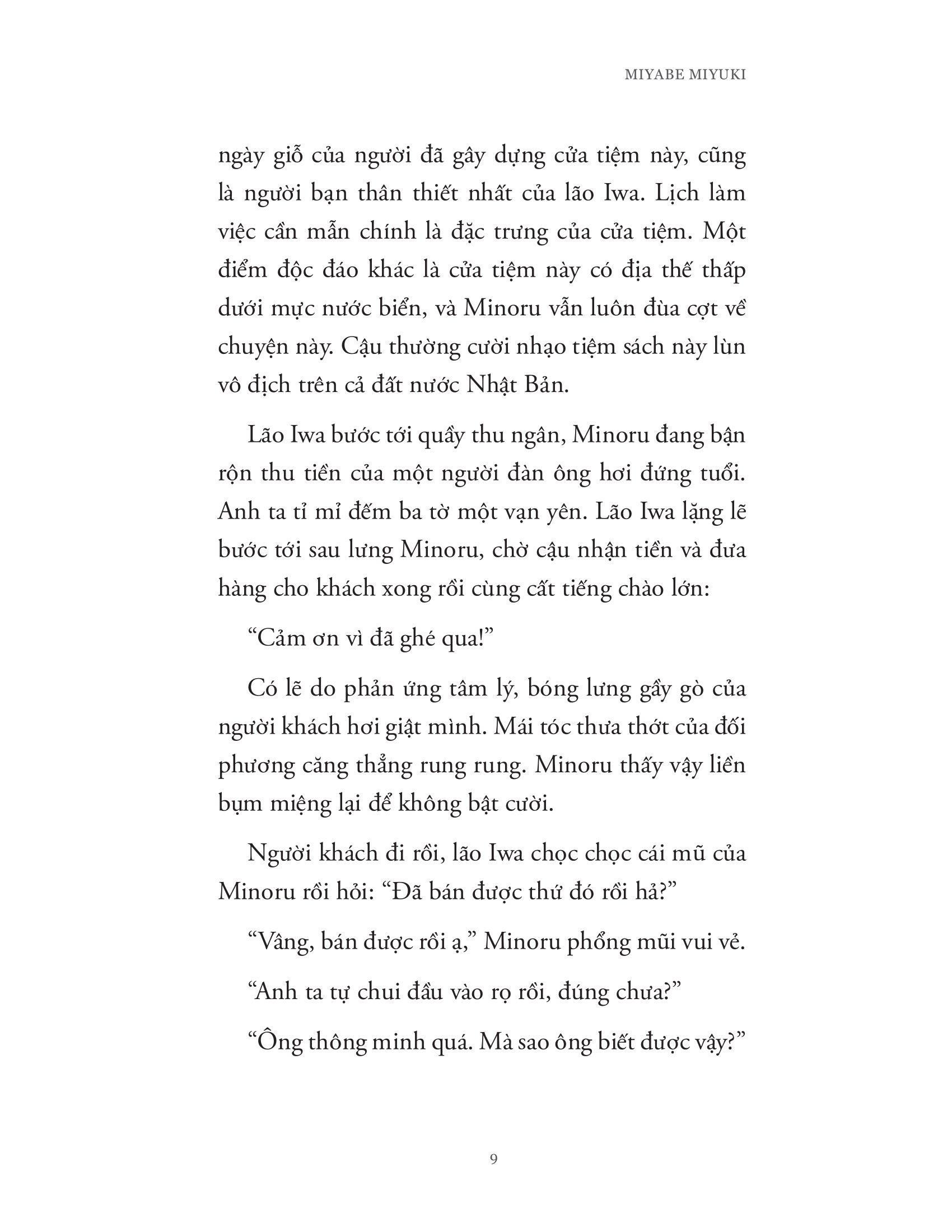 Tác giả Miyabe Miyuki sinh năm 1960 tại Tokyo, được biết đến như “Tác giả quốc dân của nền văn học Nhật Bản”. Sau khi ra mắt công chúng lần đầu vào năm 1987, bà tiếp tục viết sách và nhận được rất nhiều giải thưởng ở nhiều thể loại khác nhau như tiểu thuyết trinh thám, tiểu thuyết thời đại, tiểu thuyết giả tưởng… Bên cạnh đó, 11 năm liền bà được bầu chọn là “Tác giả nữ được yêu thích nhất” và được xem là “Kỳ tích của lịch sử văn học Nhật Bản”.