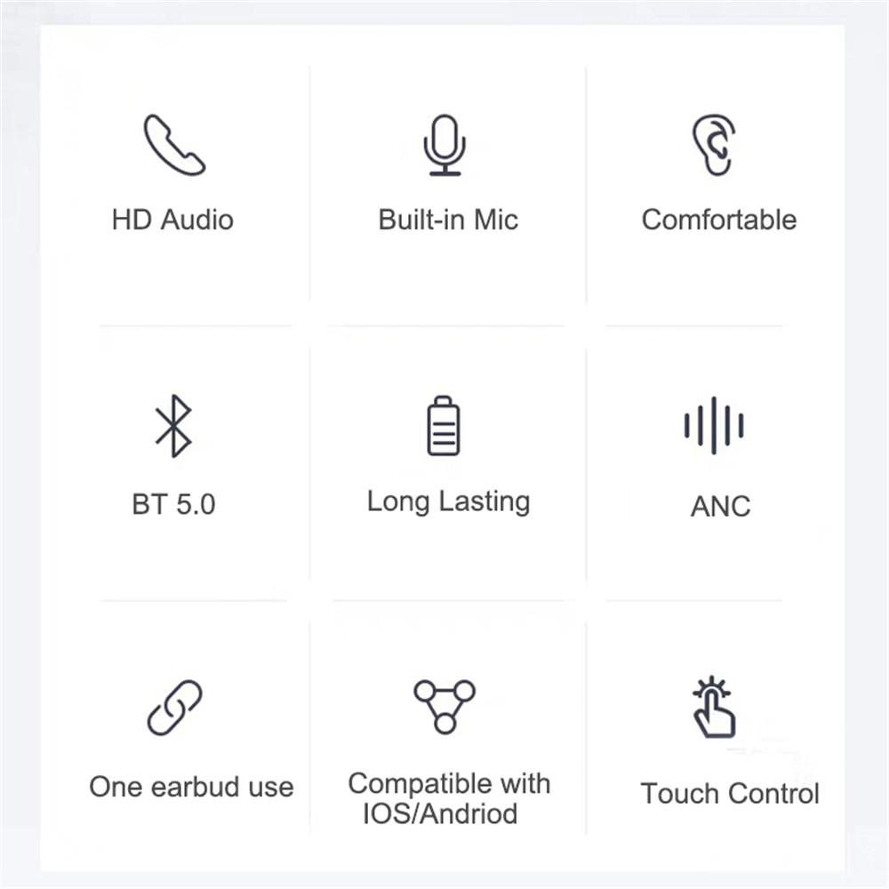 Features: BT 5.0 brings high data transfer speed, no latency, stable connection and low power consumption. Multi-functional Touch control let you answer/reject calls, play/pause songs, wake up voice assistant, by touching these in-ear wireless headphones