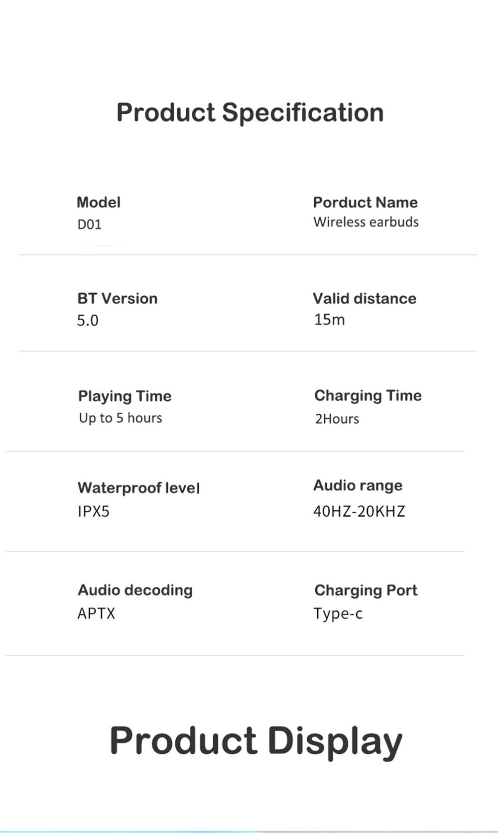 Màu sắc: đen, trắng Tên sản phẩm: D01-ANC Chip: Lanxun 5396A Phiên bản Bluetooth: 5.0 Kết nối hệ thống hỗ trợ Bluetooth: Android, IOS, Windows, chẳng hạn như máy tính xách tay có Bluetooth, máy