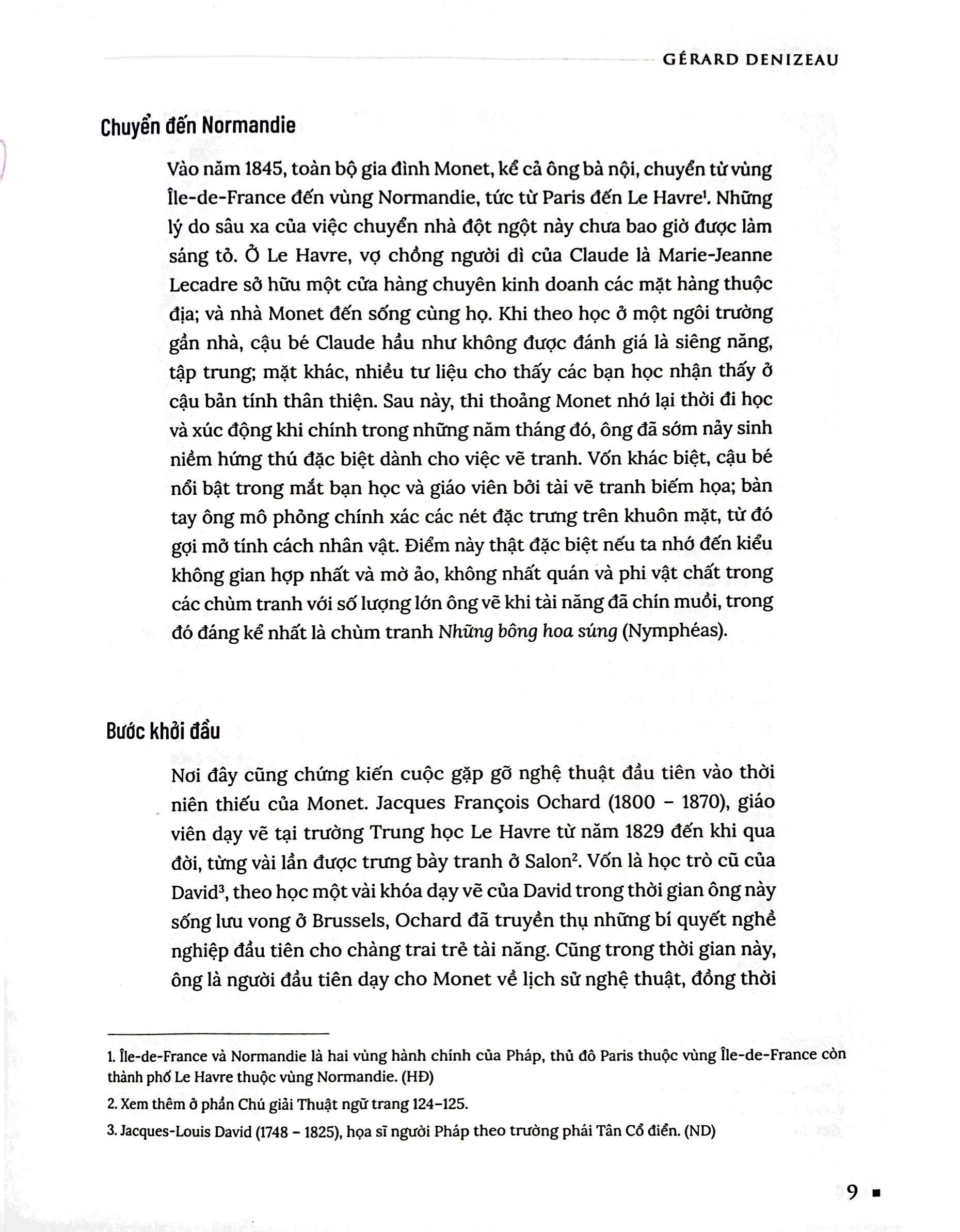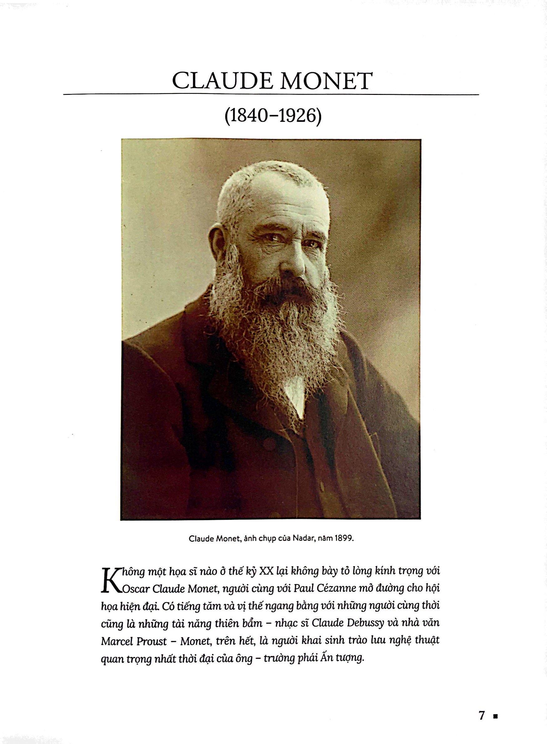 Với lối trình bày rõ ràng, mạch lạc, chia làm hai phần: cuộc đời danh họa và những kiệt tác, cuốn sách sẽ dành cho những người yêu thích danh họa Claude Monet và muốn tìm hiểu, tra cứu thông tin nhanh chóng về cuộc đời ông, cùng 45 kiệt tác mà ông đã để lại.