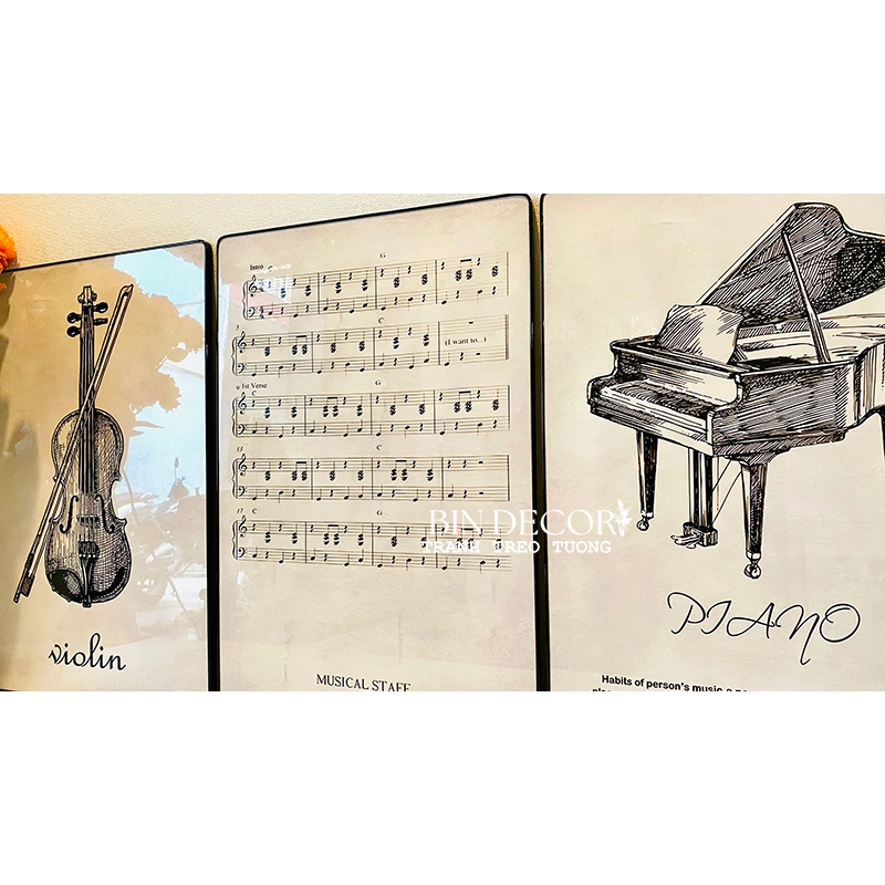 Tranh treo tường trang trí decor âm nhạc 25 - Kích thước của tranh : Kích thước : 25x35cmx3 tấm - 30x45cmx3 tấm - 40x60cmx3 tấm - Chất liệu : Tráng gương - kim sa