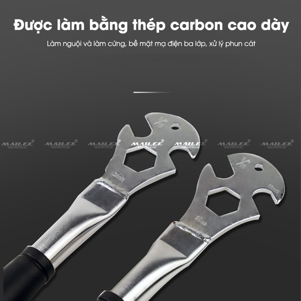 Mua tại TiktokCờ lê Tháo bàn đạp pedan xe đạp, tháo trục bánh xe trước sau, size 15mm 24mm 9/16" chất liệu thép không gỉ, tay cầm PVC chống trượt - Mai Lee Dụng cụ tháo dỡ bàn đạp xe đạp Dụng cụ tháo dỡ bàn đạp xe đạp được làm từ thép cứng cáp, trải qua quá trình tôi luyện và phủ 3 lớp mạ điện, chống gỉ sét hiệu quả. Bề mặt sản phẩm được xử lý phun cát, tạo độ bám chắc chắn.