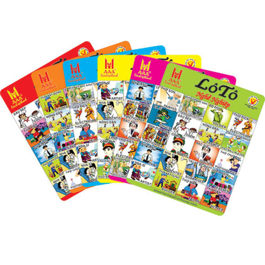 Mua tại TiktokGiới thiệu Cờ Lô Tô Nghề Nghiệp KLTNN được cải cách từ cờ lô tô truyền thông với những hình ảnh nghề nghiệp vô cùng đa dạng và những tên bằng Tiếng Anh giúp các bé vừa học vừa chơi, phát triển trí tuệ. Bé có thể cùng chơi với các anh chị, bạn bè tạo nên không khí vui vẻ thoải mái vì bộ sản phẩm có đến 6 thẻ cờ với màu sắc tươi sáng khác nhau. Sản phẩm được đóng gói trong hộp giúp các bé dễ dàng cất gọn và bảo quản sau mỗi lần chơi. Thông tin sản phẩm