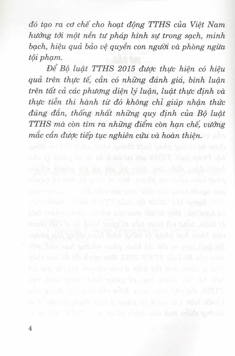 Bình Luận Khoa Học Bộ Luật Tố Tụng Hình Sự Năm 2015 (Tái Bản) Bộ luật tố tụng hình sự 2015 được Quốc hội thông qua ngày 27-11-2015, có hiệu lực từ ngày 1-1-2018. Việc