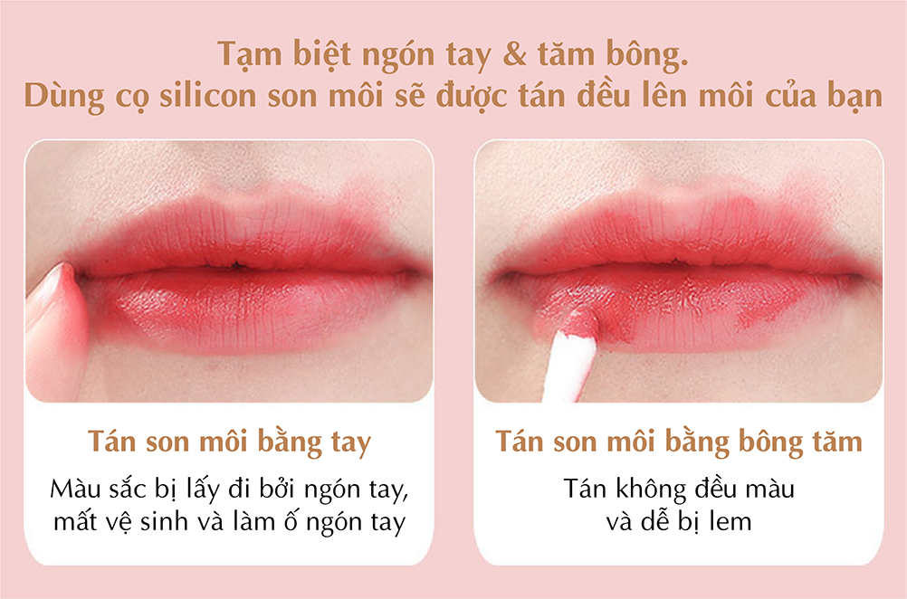 Mua tại TiktokCọ môi dạng thạch dẻo bằng silicon cao cấp, phụ hợp mọi loại da không gây kích ứng, giúp bạn tạo hiệu ứng ombre cho môi dễ dàng, đồng thời che khuyết điểm hiệu quả. Đầu cọ là thiết kế hình dáng ngón tay giúp linh hoạt sử dụng như đầu ngón tay thật của bạn, đồng thời dễ dàng lau chùi, vệ sinh sạch sẽ.