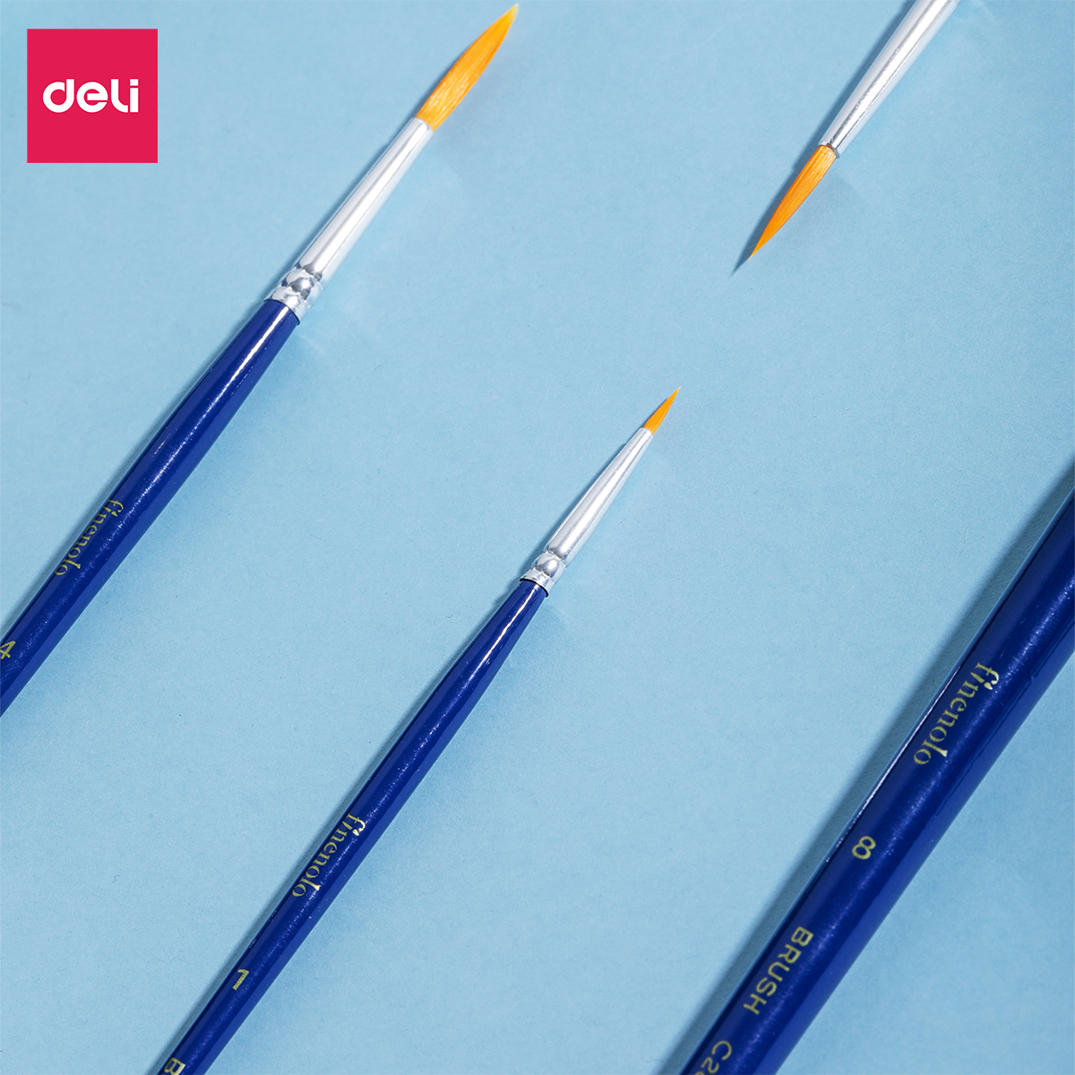 Cọ Vẽ Chuyên Nghiệp Deli, Vẽ Màu Nước/Bột/Sơn Acrylic Đầu Nylon Cán Gỗ Mịn Cao Cấp Đa Năng Chuyên Dụng