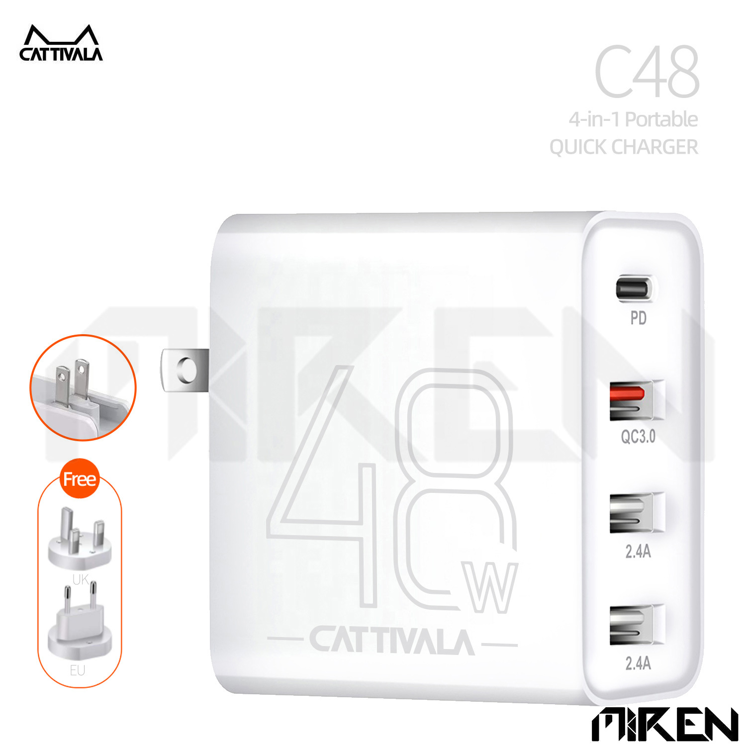 ✨Cốc – Adapter Sạc Nhanh 4 Cổng Cattivala 48W – Đa Năng – Tương Thích Đa Thiết Bị. Hàng Chính Hãng