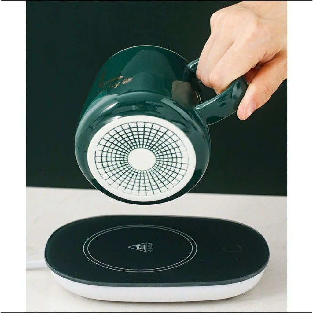 ✨Cốc Hâm Nóng Đa Năng – Bộ Ly Sứ Kèm Đế Điện Giữ Nhiệt Trà, Cafe, Sữa | Kèm Thìa & Hộp Sang Trọng