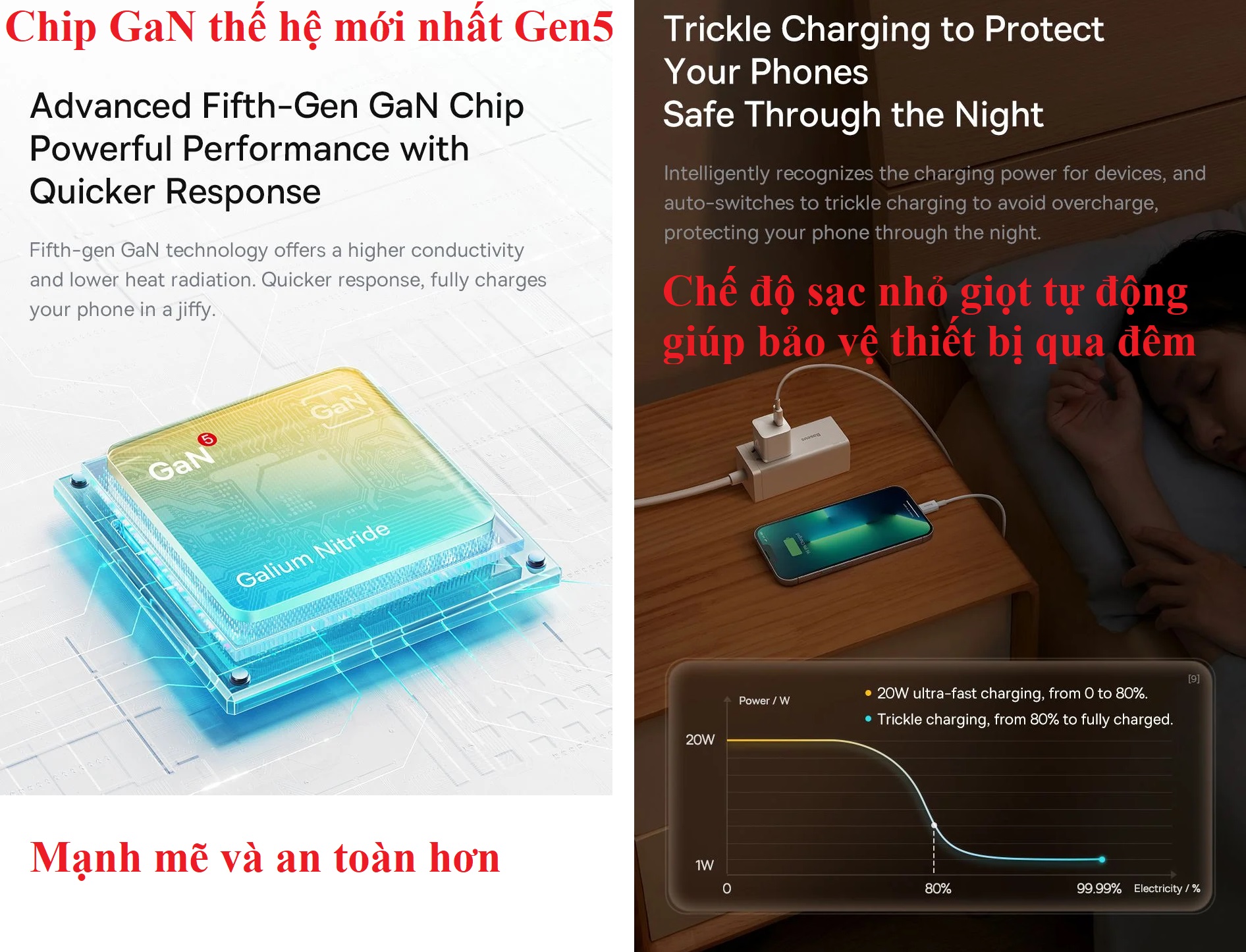 Cóc Sạc Nhanh 20W Baseus GaN5 Fast Charger 1 cổng sạc dùng cho iphone