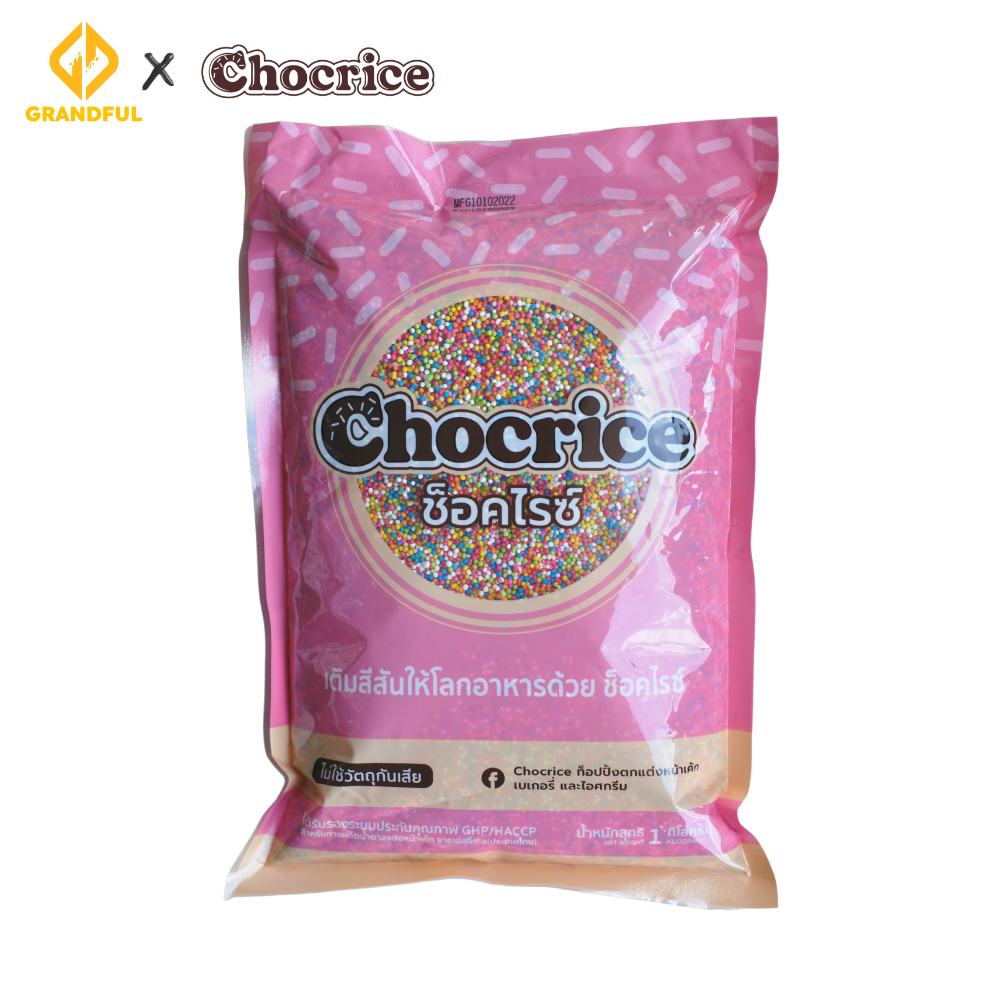 Cốm Màu Chocrice 1kg Cốm màu trang trí thực phẩm thương hiệu Chocrice của Thái Lan. Đặc biệt có 4 loại - Cốm hình gạo - Cốm hình vuông - Cốm hình đá - Cốm bi