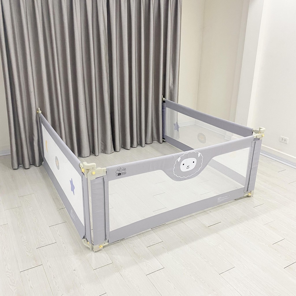 - Chiều cao thanh chắn: cao 73cm (tính chiều cao của vải lưới thanh chắn- hoặc tính từ đệm lên là 73cm). Chân đế cao hơn 30cm, tính cả là hơn 1m nên không lo thấp so với chiều cao của các Bé. Các Bé sẽ không bao giờ trèo qua hay xô đổ được thanh chắn.