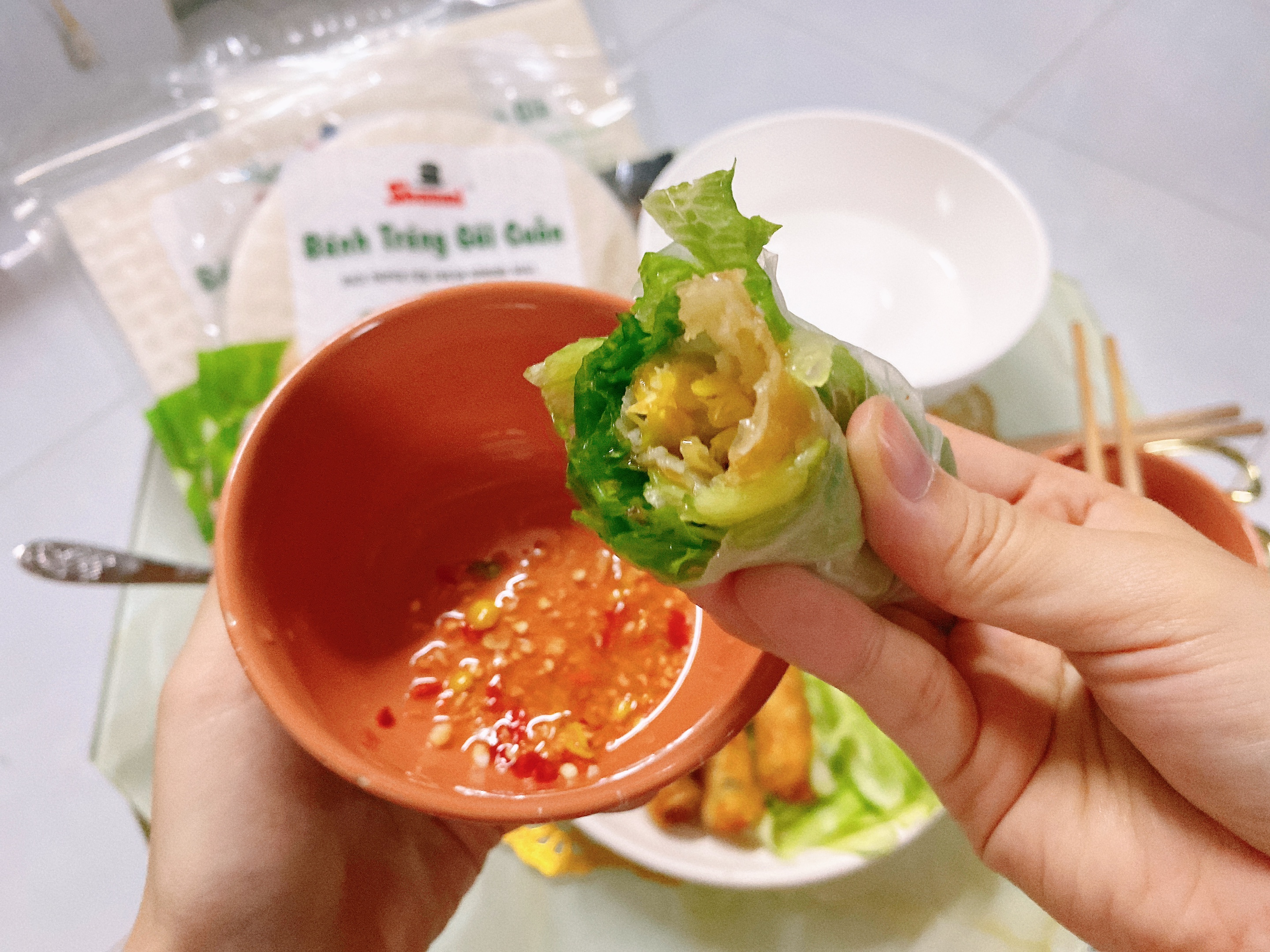 Với combo ăn ý sẽ cho bạn một bữa tiệc cuốn siêu ngon và hấp dẫn. Món bánh tráng cuốn chả giò và sự kết hợp giữa bánh tráng trắng, bánh tráng chả giò, bún