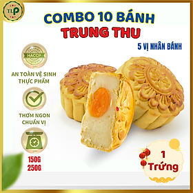 ✨Combo 10 Bánh Trung Thu 1 Trứng Muối TLP Loại 150g/250g | Nhân Bánh (Thập Cẩm, Đậu Xanh, Khoai Môn, Dừa, Trà Xanh)