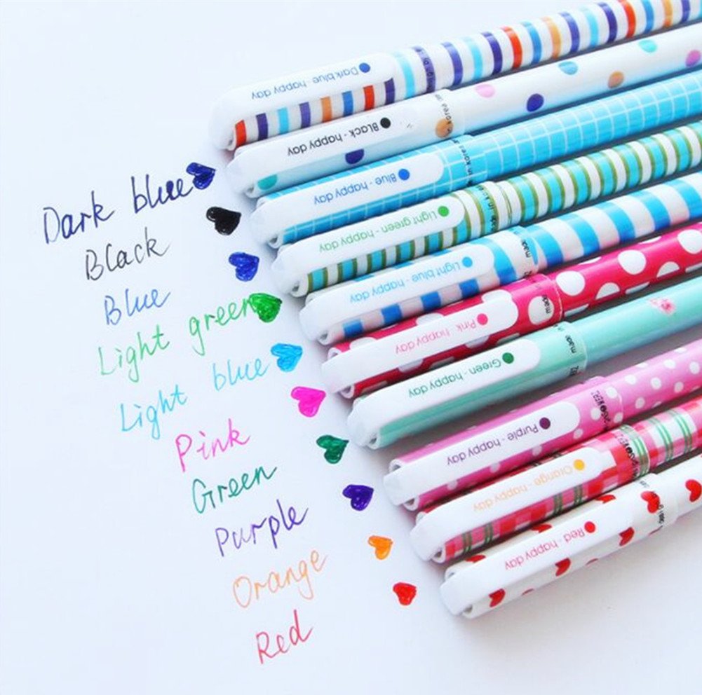 Chất liệu: Nhựa Dạng mực: Bút nước Chiều dà mỗi bút: Khoảng 15.5cm Ngòi bút: Dạng kim - Khoảng 0.3mm Sản phẩm đóng gói: 10 bút Khi bút hết mực có thể thay ruột để sử dụng tiếp Bộ gồm 10 cây bút với 10 màu sắc, họa tiết và màu mực khác nhau, tên màu được in trên nắp bút 10 màu bút gồm: xanh dương - xanh dương nhạt - xanh đen - xanh lá - xanh lá nhạt - tím -hồng - cam - đen - đỏ Thích hợp dùng ghi chép hoặc ghi chú, dễ dàng phân loại thông tin bằng nhiều màu bút khác nhau