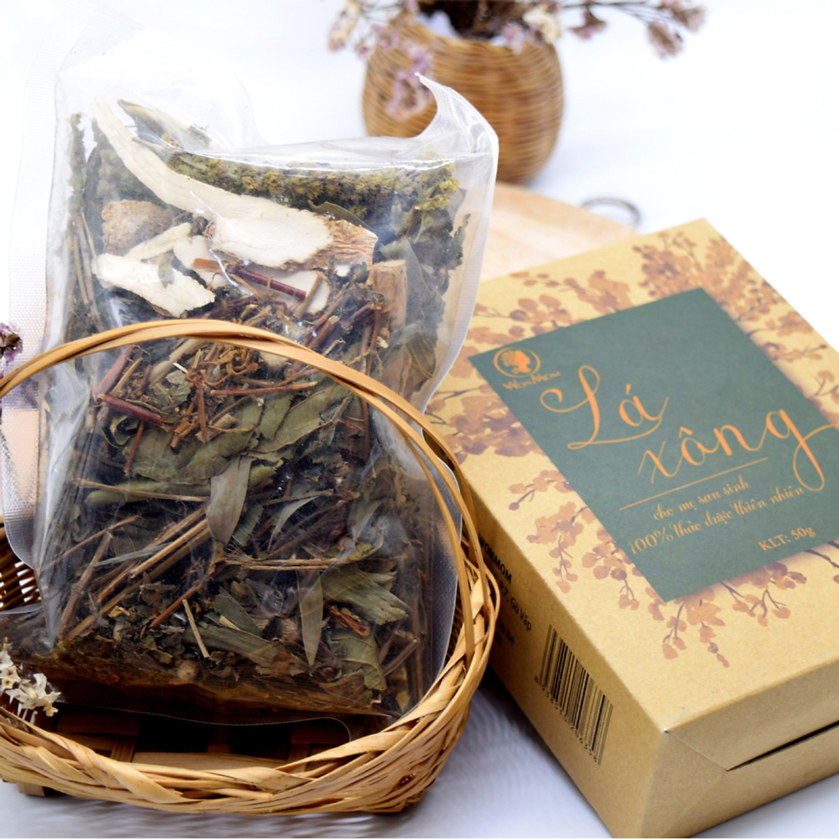 - Lá Xông Tắm Toàn Thân Thảo Dược 1 Lần Dùng Cho Mẹ Sau Sinh Wonmom Gói 50Gr Giúp Xông Hơi Thải Độc - Hồi Phục Sức Khỏe - Tránh Trầm Cảm Sau Sinh