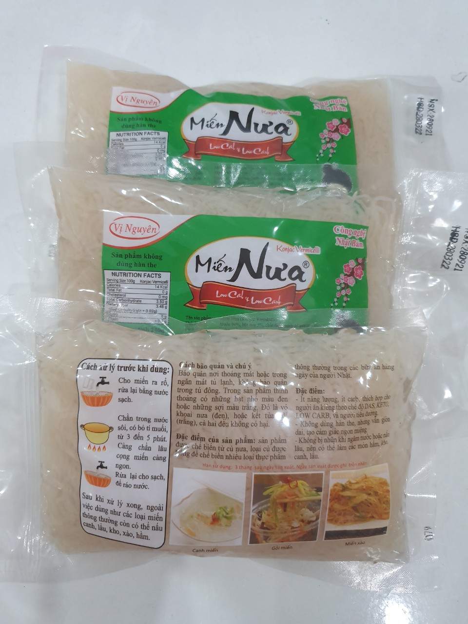 MIẾN NƯA VỊ NGUYÊN 240G - Xuất xứ: Việt Nam - Hạn sử dụng: 6 tháng (gói 240g) - Đóng gói: 240g/gói - Bảo quản: Nơi thoáng mát Những thực phẩm được làm từ bột Glucomanna