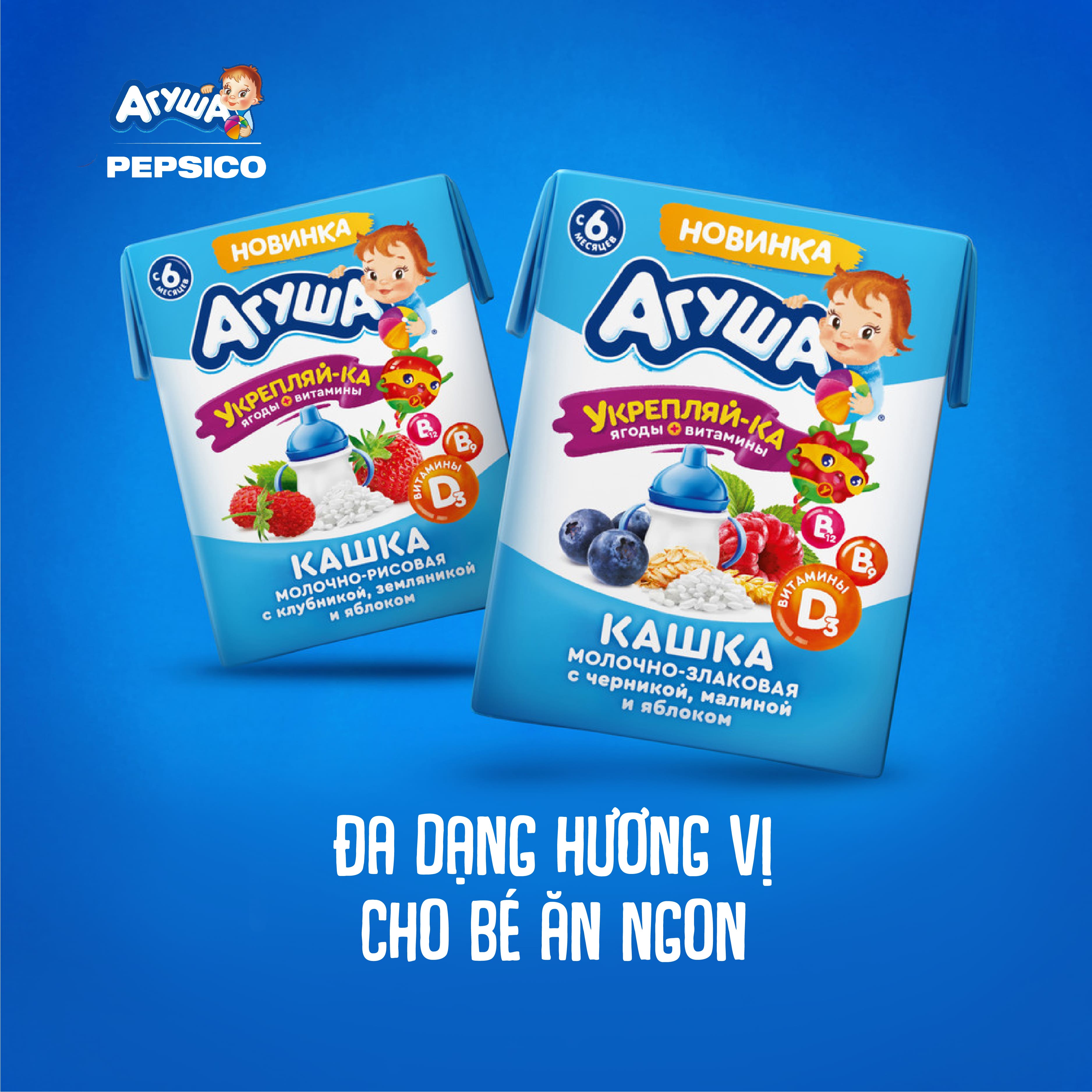 SỮA ĂN DẶM TĂNG CÂN NGŨ CỐC VỊ VIỆT QUẤT, MÂM XÔI VÀ TÁO AGUSHA 200ML   Agusha là dòng sữa nổi tiếng của Nga, là giải pháp dinh dưỡng hoàn hảo cho những bé