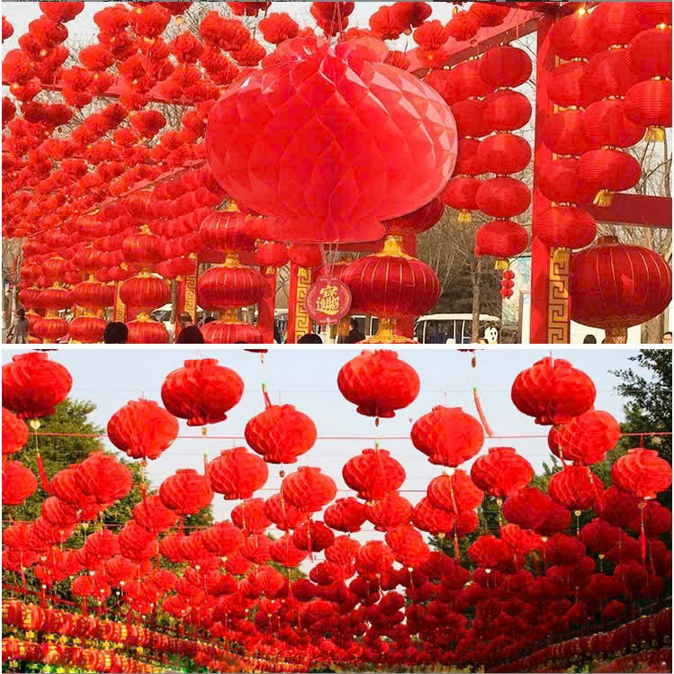 ✨Combo 10 Lồng Đèn Đỏ Trang Trí Tết Bằng Nilon Chống Nước Mẫu Đèn Tổ Ong - Hàng Chính Hãng MINIIN