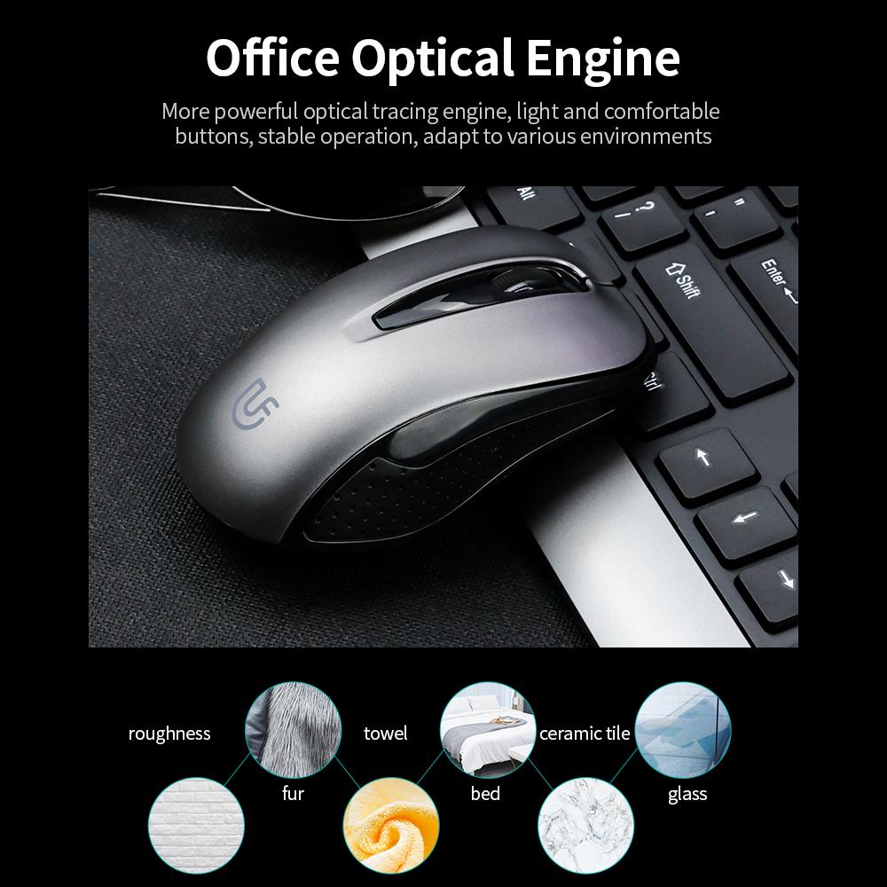 Features: 2.4G Wireless Transmission Technology 2.4GHZ wireless transmission, 8-10meters distance, effectively avoid the interference of BT and WIFI, and ensure the stability of wireless transmission. Low Decibel Keys The mouse has low-decibel buttons with a