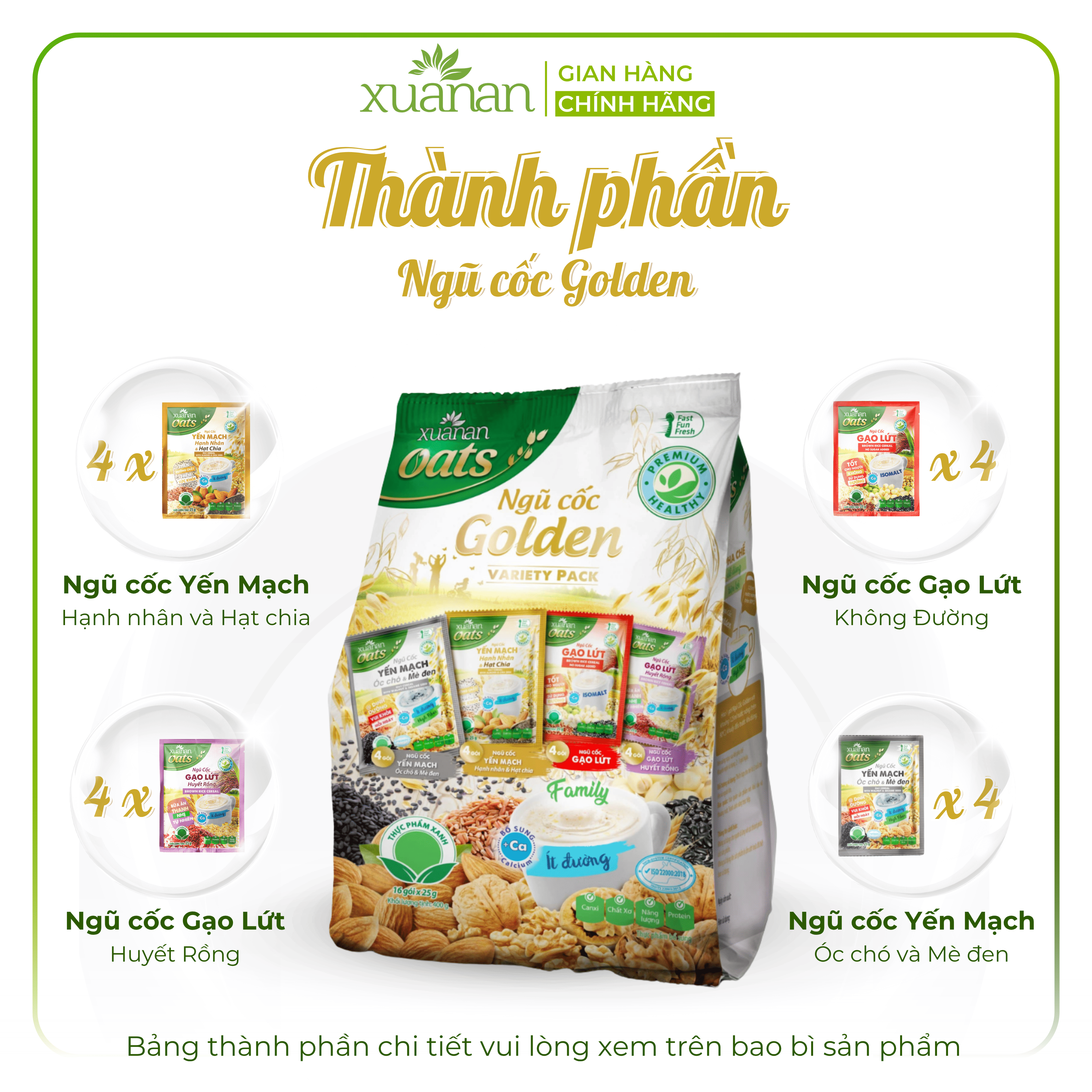 ✨Combo 11 Túi Ngũ Cốc Golden (Variety Pack) Xuân An [ít đường] 400G {25g*16 gói}