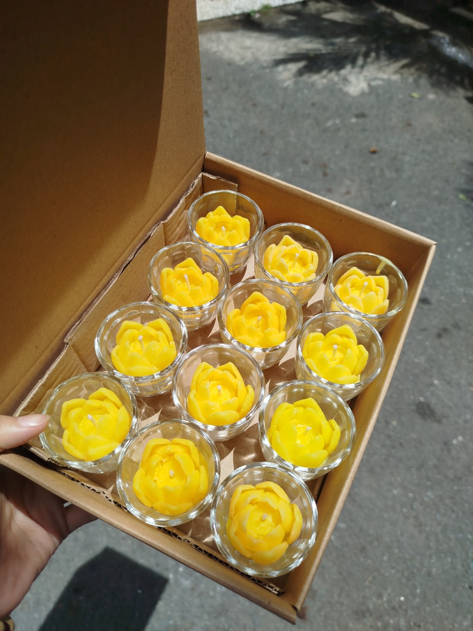 [Bơ Vàng] Đèn Bơ - Nến Bơ Hình Bông Sen Vàng 12H