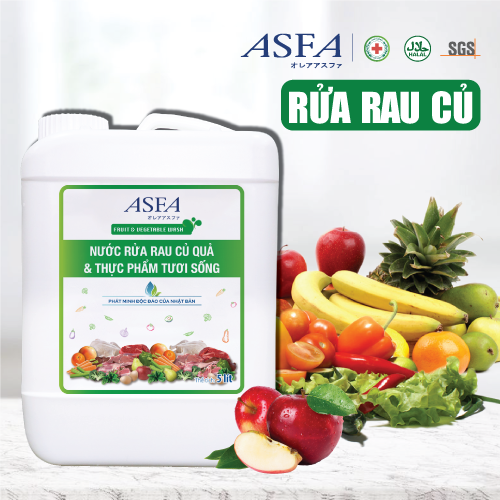- Công dụng Diệt khuẩn và khử trùng: ASFA Fruit & Vegetable tiêu diệt các loại vi khuẩn, nấm mốc và vi rút gây hại cho trái cây và thực phẩm, giúp ngăn chặn sự phát triển của vi khuẩn và bảo vệ sức khỏe của người tiêu dùng. Ngăn chặn trái cây bị hỏng: Dung dịch HOCl trong sản phẩm có khả năng ức chế ethylene, một chất kích thích sự tăng trưởng của trái cây; nhờ đó giúp duy trì chất lượng của trái cây trong thời gian dài. An toàn và không gây ô nhiễm: ASFA Fruit & Vegetable là một sản phẩm an toàn, không gây độc hại cho con người và không gây ô nhiễm môi trường. Nó không để lại mùi hương hay vị kháng khó chịu trên trái cây sau khi sử dụng, giữ cho thực phẩm luôn tươi ngon và an toàn cho sức khỏe.