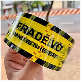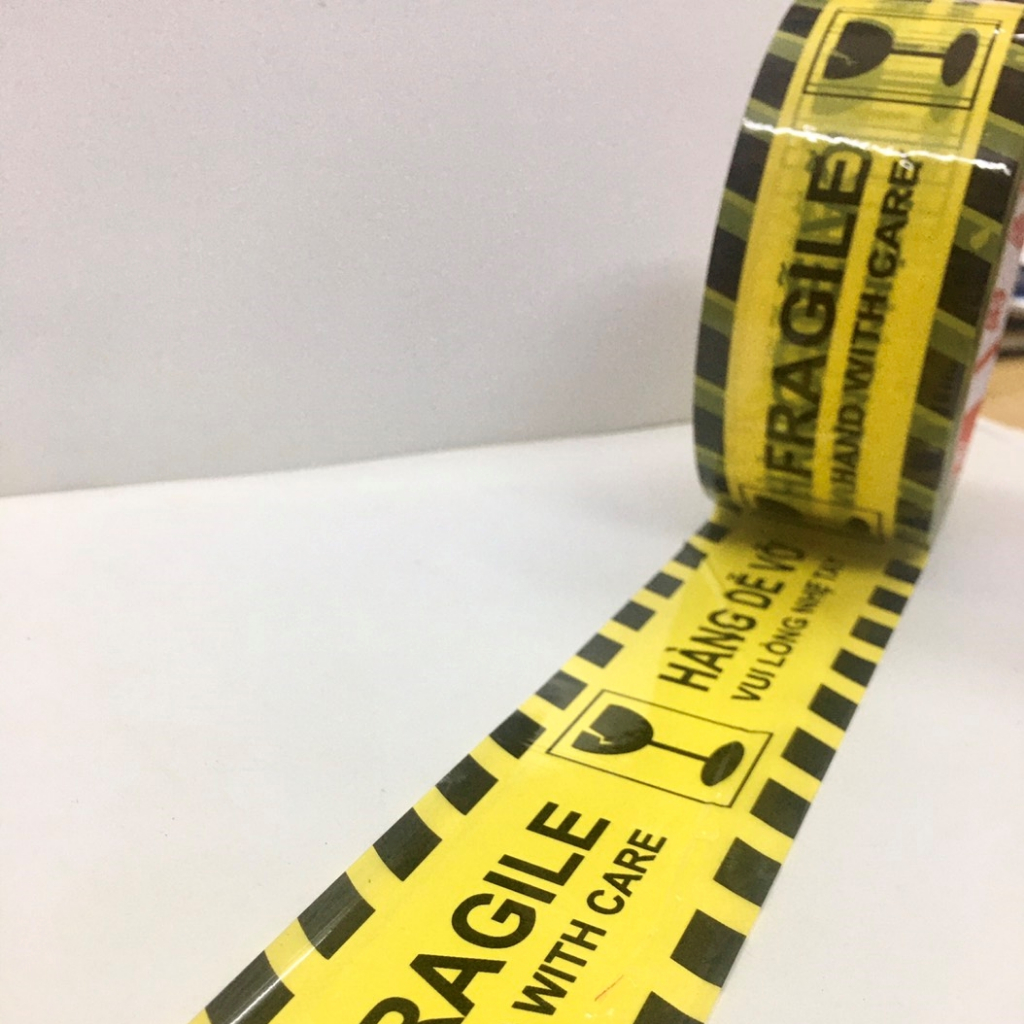 - Băng keo "HÀNG DỄ VỠ" nền vàng nổi bật đóng gói hàng niêm phong rất rõ. Độ dày màng 55mic: độ dính tốt, dẻo dai không đứt. Hàng dễ vỡ nền vàng, chữ đen