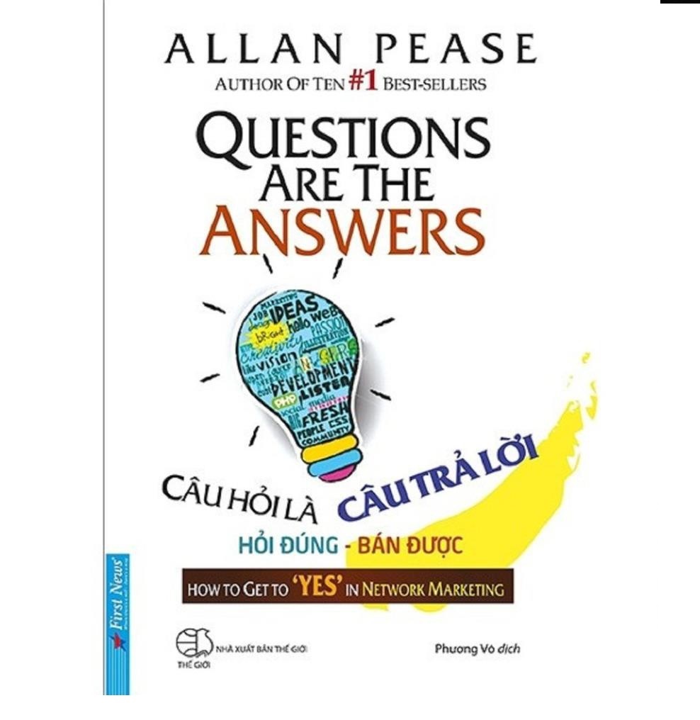 1. Câu Hỏi Là Câu Trả Lời Làm sao để thuyết phục được khách hàng bỏ tiền ra mua sản phẩm của mình. Một câu hỏi không đơn giản. Và là câu hỏi xuyên suốt trong cuộc đời bất cứ người bán hàng nào. Bán được hàng - một mục tiêu vô cùng quan trọng, là sự sống còn của người bán hàng lẫn doanh nghiệp. Tuy nhiên, không phải người bán hàng nào cũng làm được điều đó.Allan Pease là tác giả của cuốn sách Câu hỏi là câu trả lời. Khi còn là cậu bé, ông đã gõ cửa từng nhà để bán từng miếng xốp rửa chén, năm 19 tuổi, Allan Pease bắt đầu bằng việc bán bảo hiểm nhân thọ và sau đó rất thành công. Trong “Câu hỏi là câu trả lời” không chỉ giúp bạn bán được hàng mà bạn sẽ có được nhiều kỹ năng tuyệt vời như: Hiểu được ý muốn của khách hàng, hay cách để mở một cuộc nói chuyện với khách hàng, những ngôn ngữ cụ thể của cơ thể để tạo ấn tượng tốt với lần đầu gặp cũng như duy trì cuộc nói chuyện….