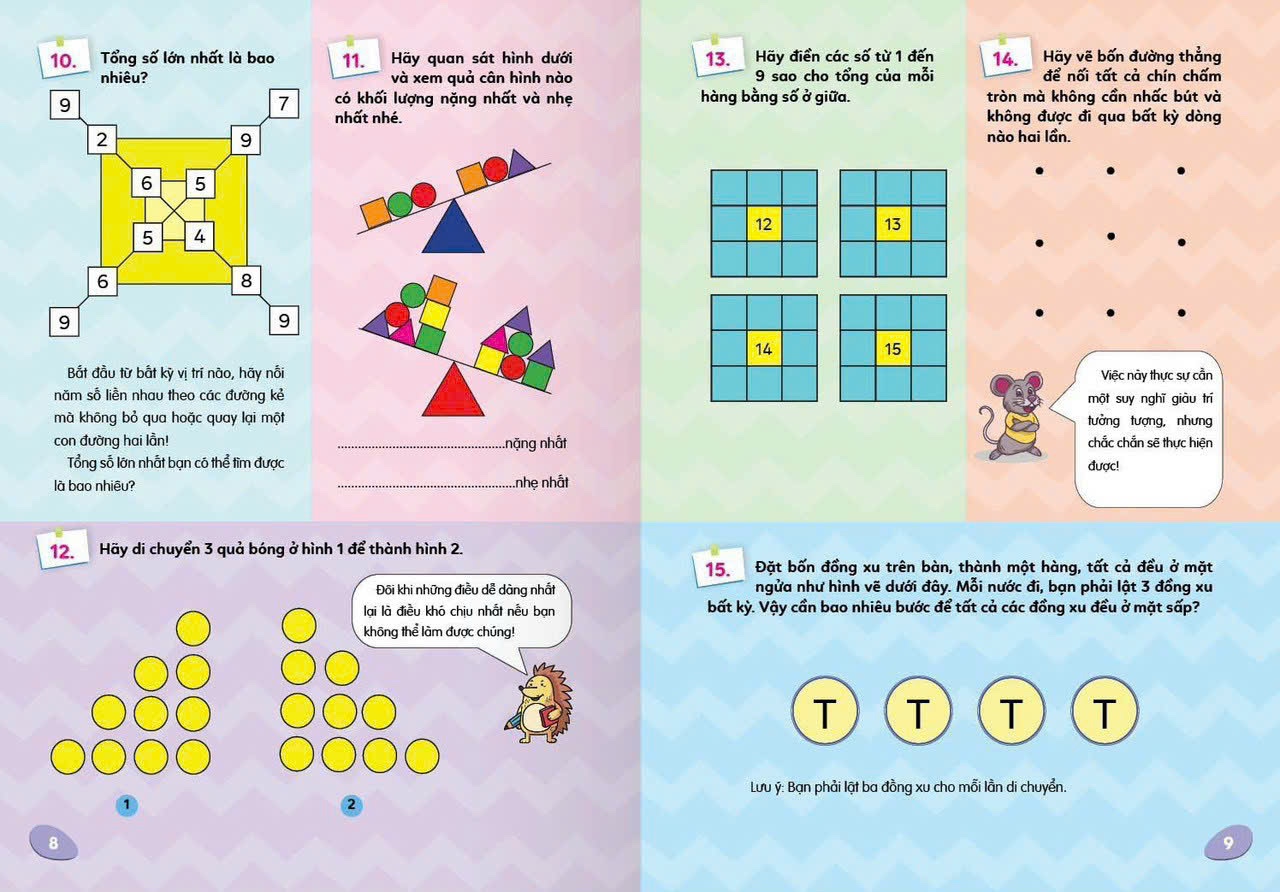 Các câu đố được thiết kế với mức độ khó từ dễ đến khó, thử thách người đọc ở nhiều mức độ khác nhau và giúp tăng cường kỹ năng tư duy toán học trong nhiều tình huống.