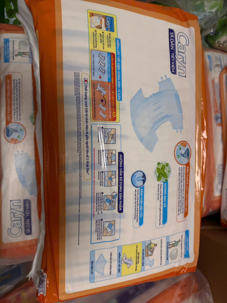 Tính năng sản phẩm     Tã dán Siêu thấm Caryn với cải tiến “Rãnh thấm siêu tốc’ duy nhất trên thị trường giúp tăng cường độ thấm hút và giữ bề mặt tã luôn