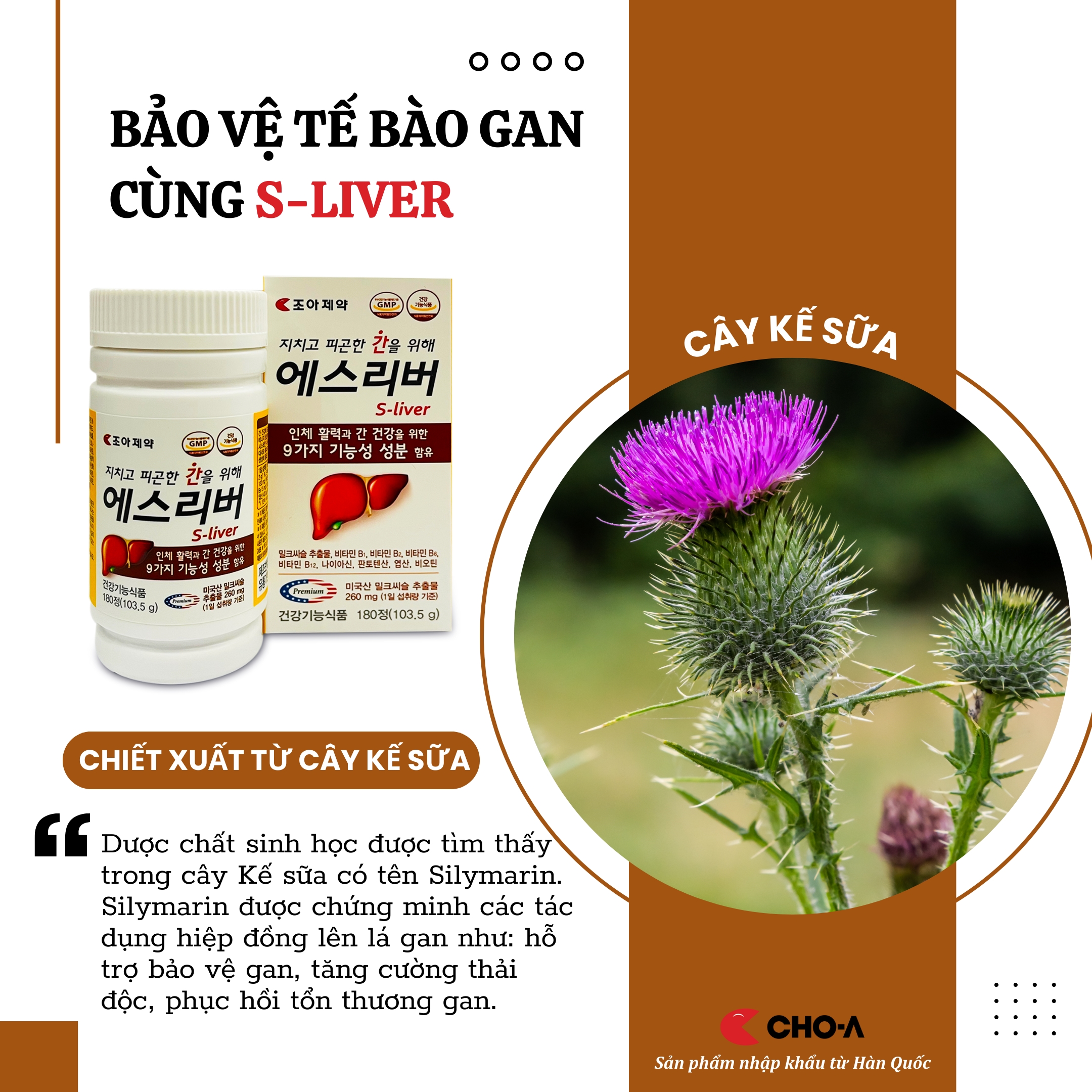 COMBO 2 HỘP THỰC PHẨM BẢO VỆ GAN S-LIVER THANH NHIỆT GIẢI ĐỘC (2 HỘP X 180 VIÊN) S-LIVER là sản phẩm dành cho gan với chiết xuất từ cây kế sữa, hỗn hợp các