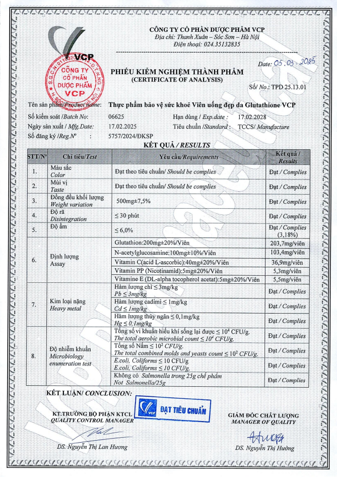 ✨[Combo 2 hộp] TPBVSK Viên uống đẹp da Glutathione VCP - Hỗ trợ làm sáng da, giảm các triệu chứng nhăn da, khô da, nám da - Hộp 20 viên
