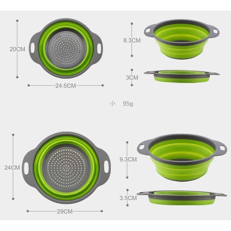 Kích thước: + rổ lớn 29249,3cm, rổ nhỏ 24,5208,5cm (khi chưa gấp gọn)