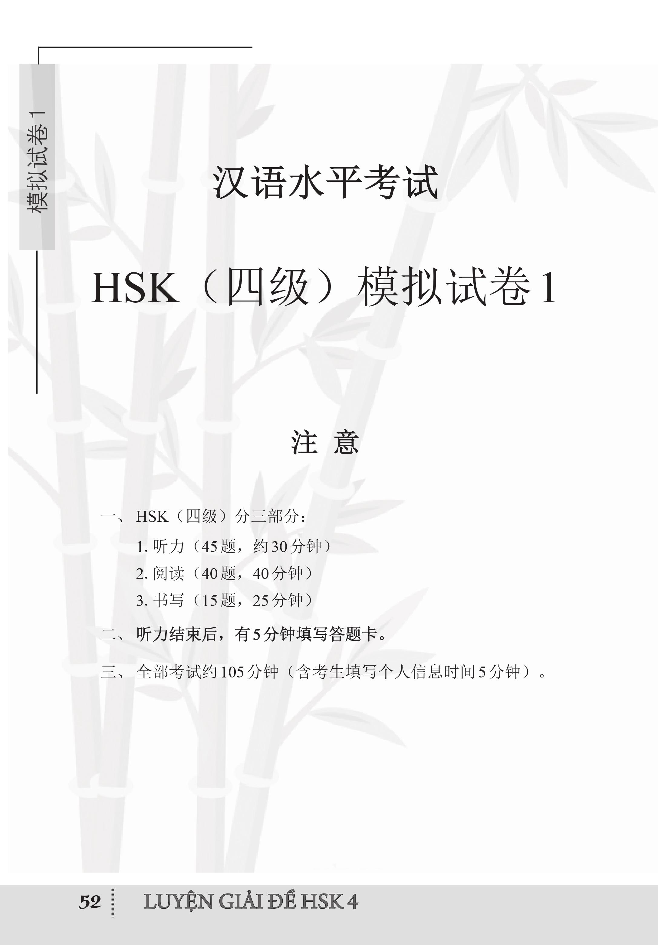 • Phần 2: Đề thi mô phỏng - cung cấp 12 bộ đề thi mô phỏng được biên soạn sát với đề thi thực của kỳ thi HSK cấp 4.