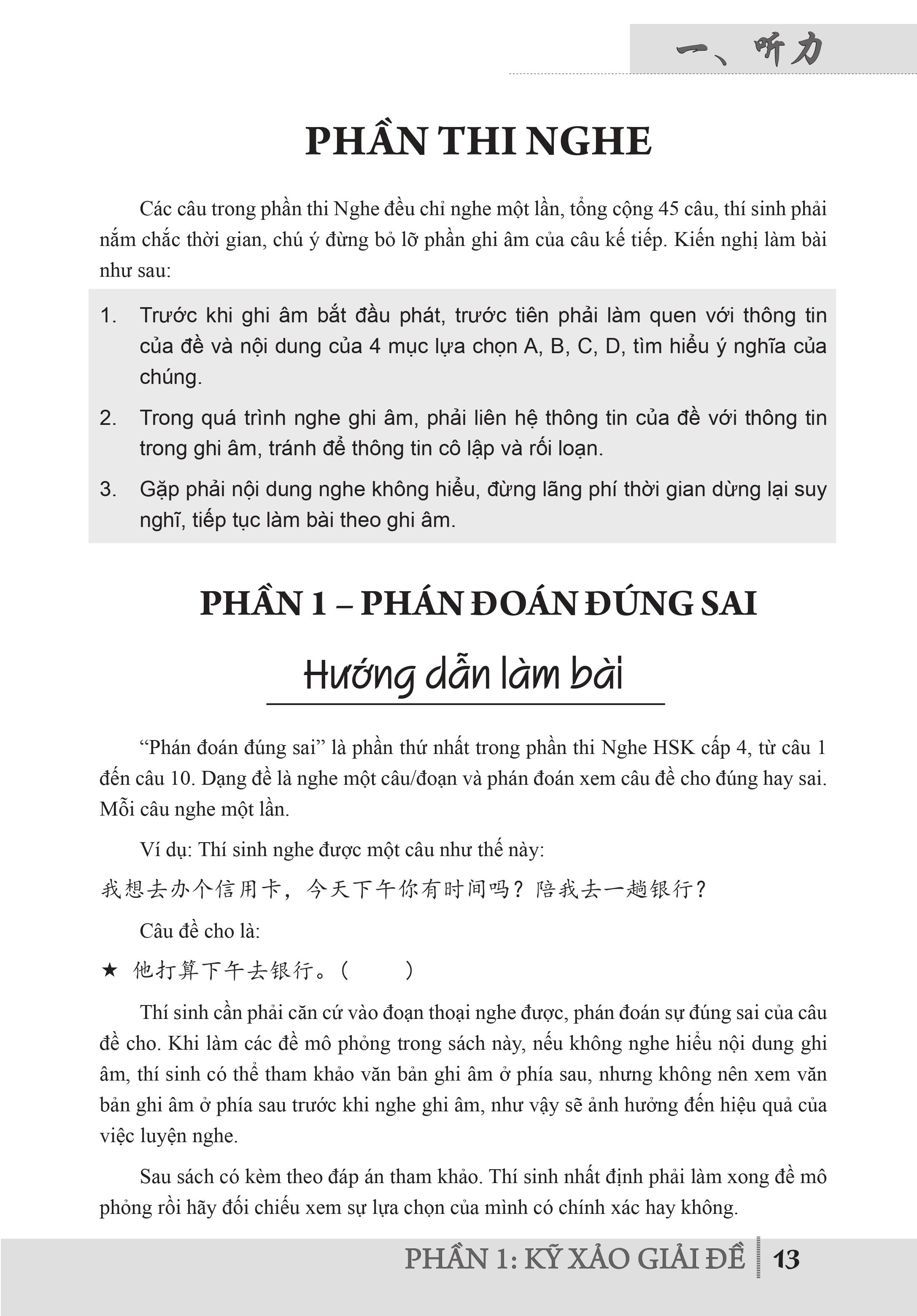 • Phần 2: Đề thi mô phỏng (cung cấp 12 đề thi mô phỏng HSK cấp 4)