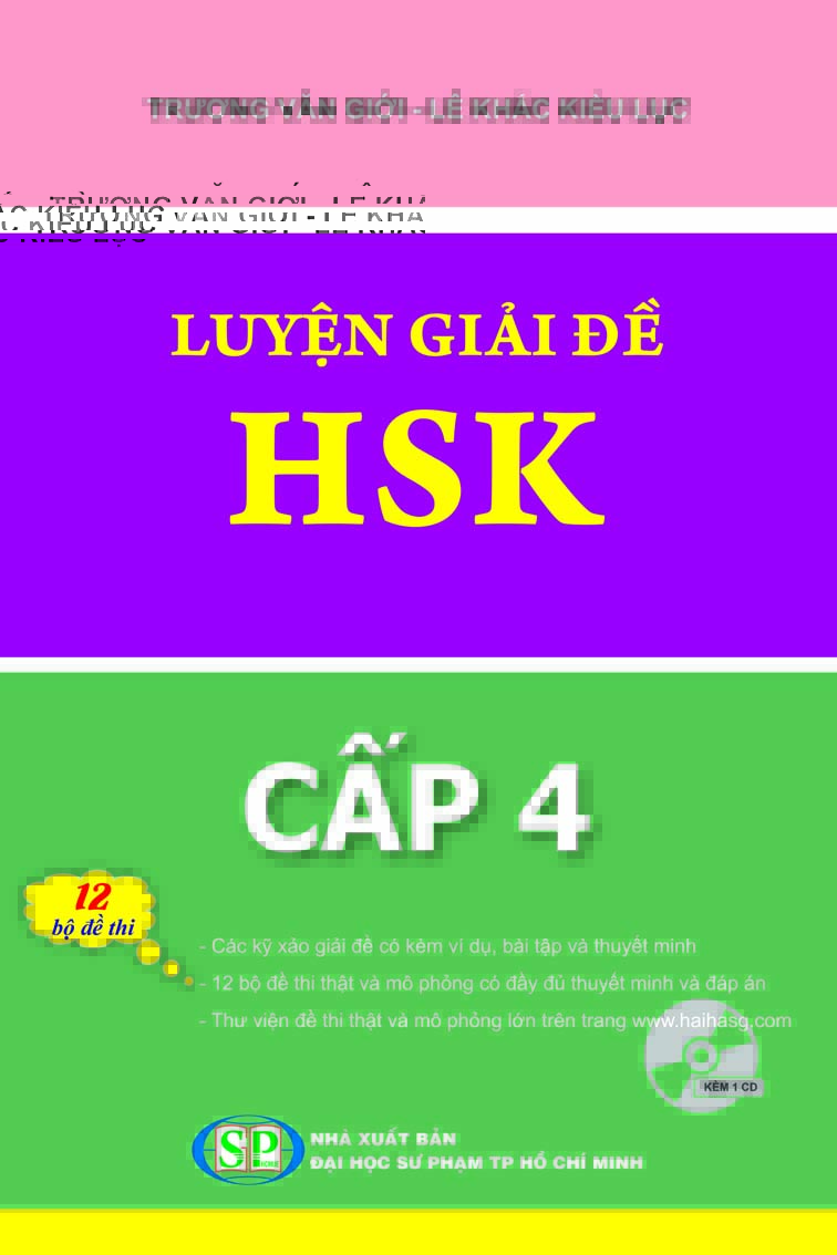 1. Luyện thi HSK cấp tốc cấp 3+4 Tác giả: Trương Văn GIới & Lê Khắc Kiều Lục Nhà xuất bản Đại Học Quốc Gia TPHCM Số trang: 424 Kích thước: 18.5cm x 26.5cm x