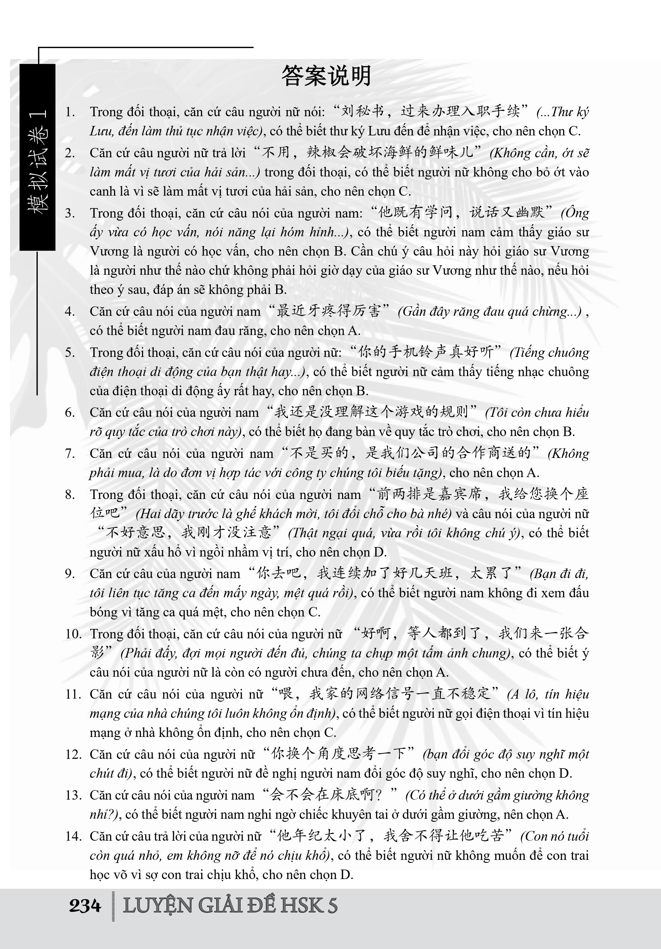 Phần 3: Thuyết minh đáp án (cung cấp Văn bản ghi âm, Đáp án và Thuyết minh đáp án của 10 đề mô phỏng ở phần 2)