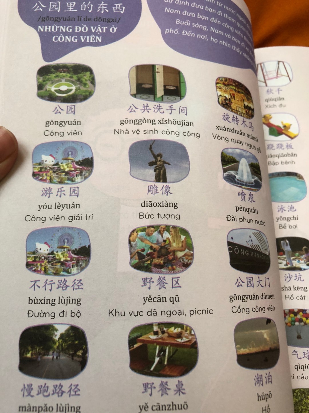- Cuối cùng các hành động ở trên tạo ra kết quả ra sao, bạn và mọi người cảm thấy thế nà Là chúng ta sẽ có nhau nhóm TÍNH TỪ Thật tuyệt vời, từ 3 nhóm từ trên là chúng ta đã có ngay đầy đủ 3 nhóm từ chính và nhanh tay ghép vào các cấu trúc ngữ pháp để tạo thành câu hoàn chỉnh. Với mỗi chủ đề bạn sẽ lần lượt liệt kê ra các DANH TỪ, các ĐỘNG TỪ, các TÍNH TỪ liên quan được miêu tả sinh động và cực kỳ chi tiết qua hình ảnh chân thực. Tiếp đó sẽ có phát triển học thêm các PHÓ TỪ và TRẠNG TỪ qua các đoạn hội thoại mẫu mang tính ứng dụng cực kỳ cao giúp bạn sau này dễ dàng hơn rất nhiều trong việc học ngữ pháp đó nha. Cuốn sách này gồm 20 chủ đề thông dụng nhất trong đời sống với tổng cộng gần 5000 từ vựng khác nhau được miêu tả chi tiết qua hình ảnh và lồng ghép trong hội thoại. Các chủ đề bao gồm: Trường hoc, thư viện, nhà bếp, công viên, quán ăn, khách sạn, chợ và siêu thị, công ty, bệnh viện, nhà ga và bến xe, sân bay, quán cafe, phòng tắm và nhà vệ sinh, tiệm mát xa, cửa hàng điện thoại, rạp chiếu phim, nhà thi đấu thể thao, cửa hàng mỹ phẩm, cửa hàng thời trang. Ngoài từ vựng sách còn đưa thêm rất nhiều ví dụ giao tiếp và cấu trúc liên quan trực tiếp đến từng chủ đề để bạn dễ dàng bổ sung kiến thức liên quan trong quá trình tự học mà không cần phải tra các sách từ điển ngữ pháp khô khan!