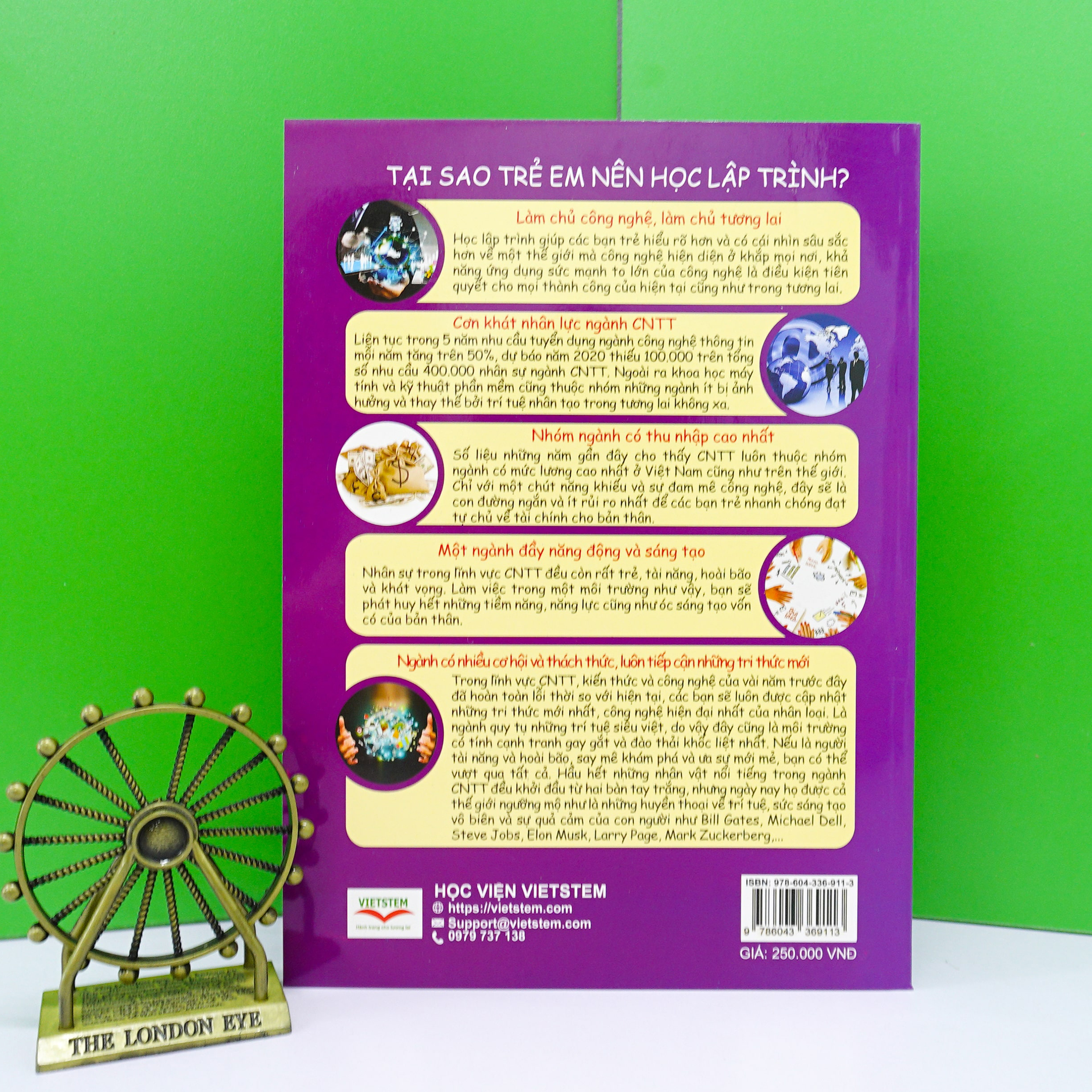• Học sinh cũng như giáo viên hướng dẫn ôn luyện “Hội thi Tin học trẻ toàn quốc - Bảng B: Thi kỹ năng lập trình cấp Trung học cơ sở”.   LỜI CẢM ƠN Chúng tôi xin chân thành cảm ơn cộng đồng giáo viên tin học, các bạn học sinh đã luôn ủng hộ VIETSTEM và đội ngũ tác giả. Những phản hồi tích cực trong thời gian qua là động lực để chúng tôi tiếp tục hành trình tạo ra những sản phẩm ngày một sáng tạo và chất lượng, giúp phổ biến lập trình cũng như phổ biến giáo dục STEM đến mọi học sinh Việt Nam, góp phần tạo nên một thế hệ trẻ yêu công nghệ. Mọi thắc mắc về các sản phẩm của VIETSTEM liên hệ shop để được hỗ trợ và giải đáp. THÔNG TIN SÁCH