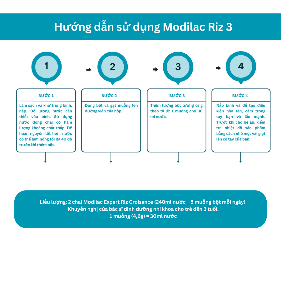 Hướng dẫn cách pha sữa bột Modilac Expert Croissance 3 đúng cách